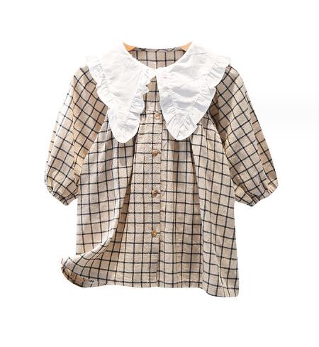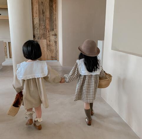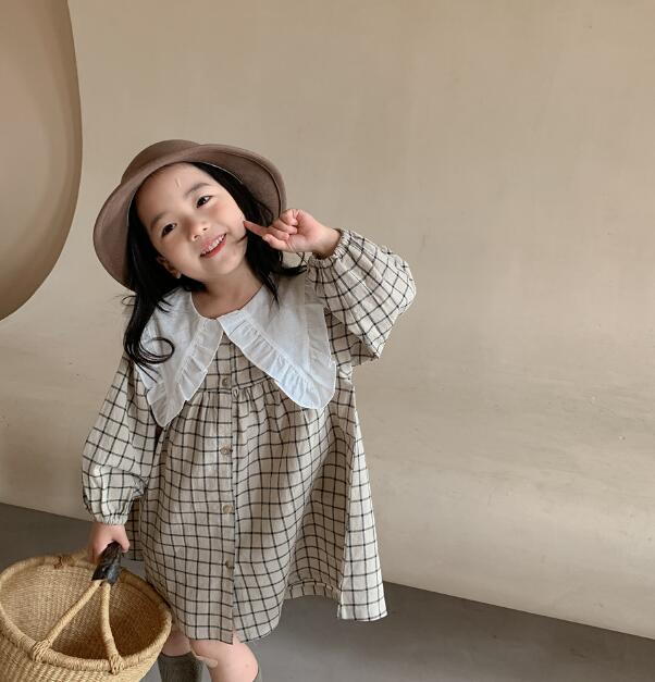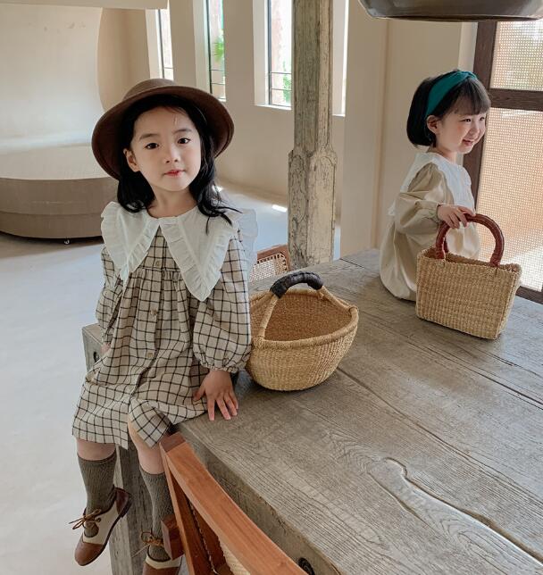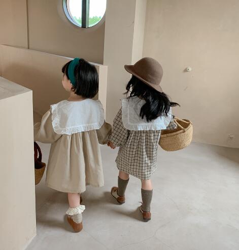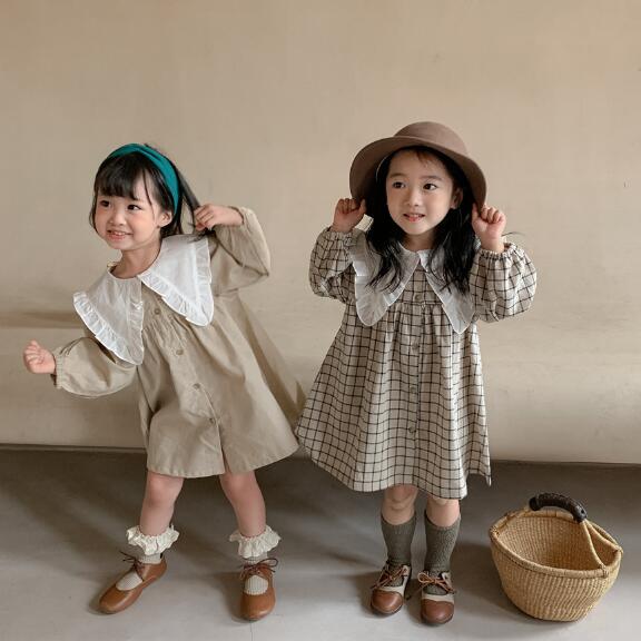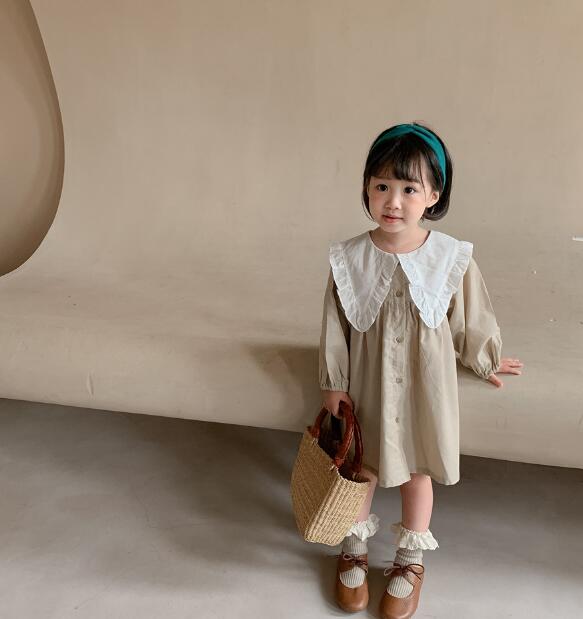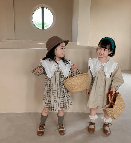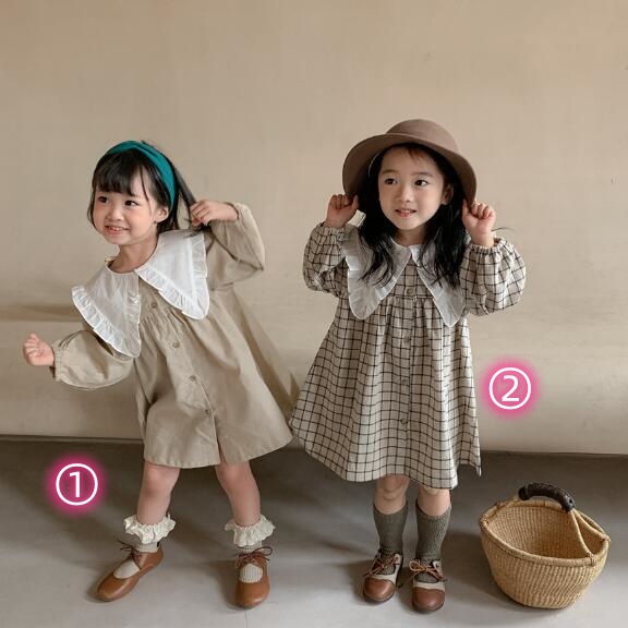 可愛い白襟がポイントのキッズ用ロングワンピースです。