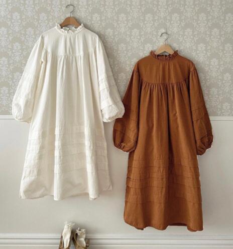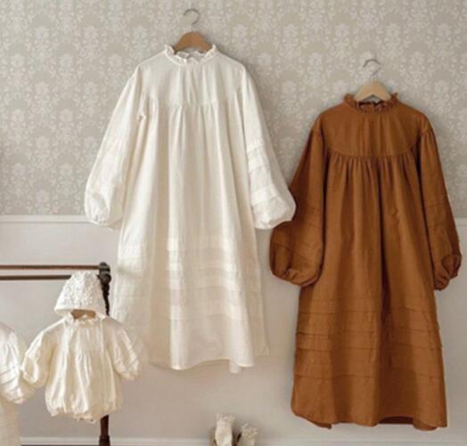 秋の新作キッズ向け親子でお揃いコーディネートが楽しめるロングワンピースです。