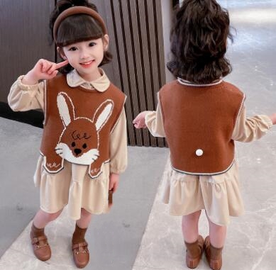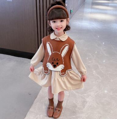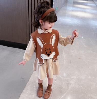可愛いうさぎの刺繍が印象的なキッズ向け秋冬コーディネートセットです。