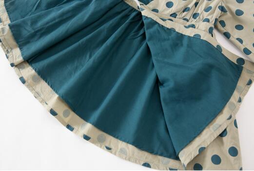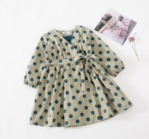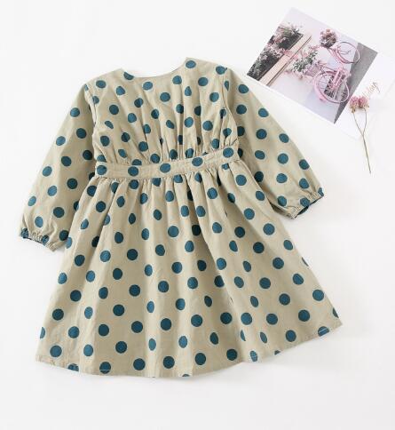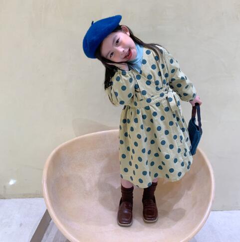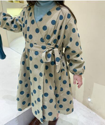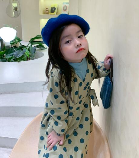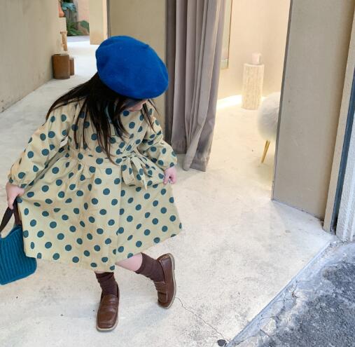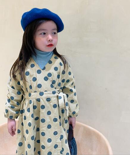 可愛い水玉柄が印象的なキッズ用ロングワンピースです。 秋冬にぴったりの長袖デザインで、ウエストリボンが女の子らしさを演出します。 普段着からお出かけまで幅広く活躍する一着で、80-90センチサイズに対応しています。