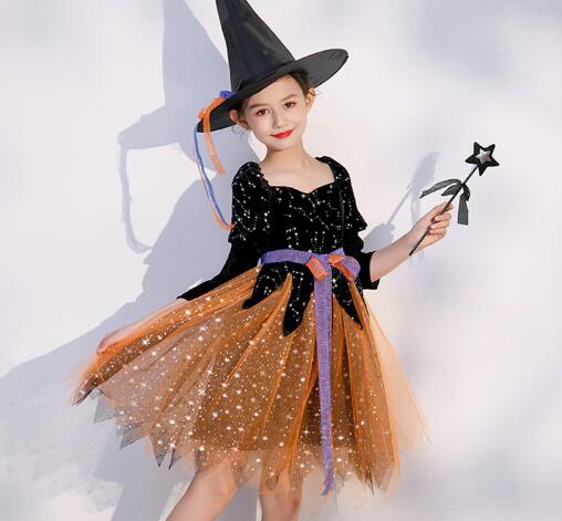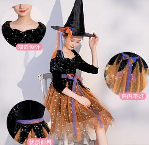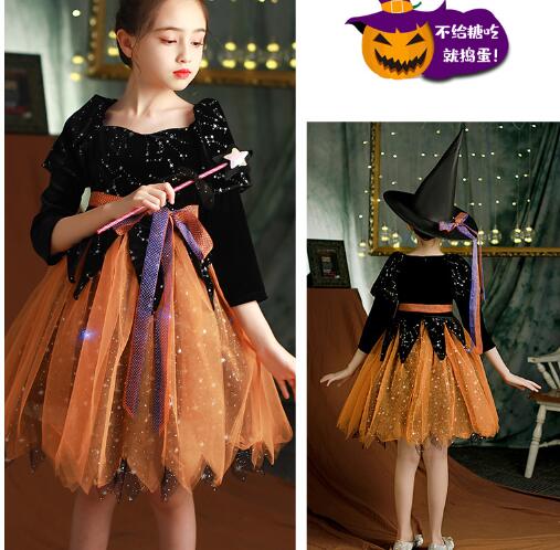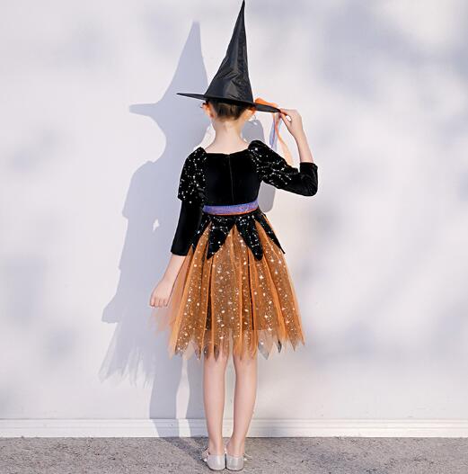 キッズ女の子用の魔女風ロングワンピース衣装セットです。