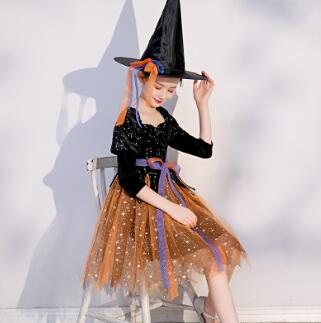 黒のキラキラトップスとオレンジのチュールスカートが可愛い本格的なデザイン。