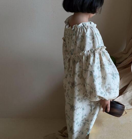 ふんわりとしたフリル袖とギャザーネックが特徴的で、お出かけや特別な日にぴったり。