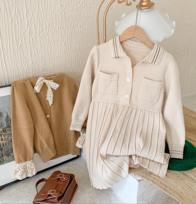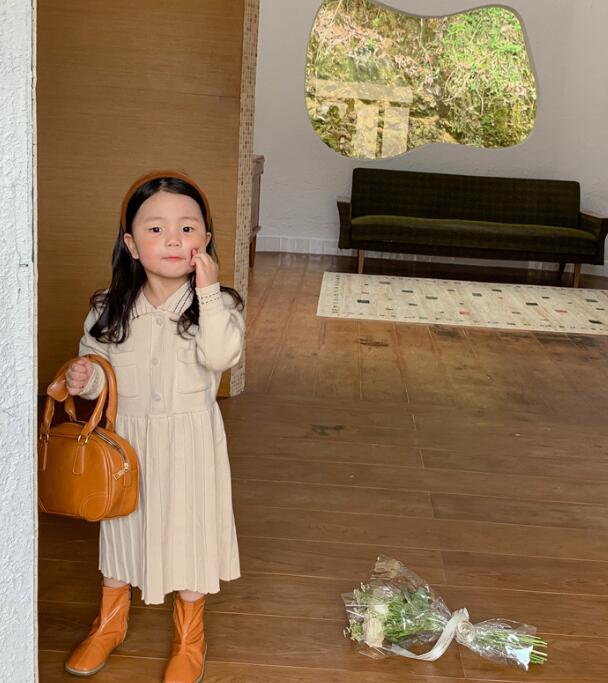 お子様にぴったりなキッズ向けのニットワンピースです。 柔らかな編み地と上品なプリーツスカートが特徴のロングワンピースで、普段使いから特別な日まで幅広くお使いいただけます。 長袖デザインで季節を問わず着回せる一着です。
