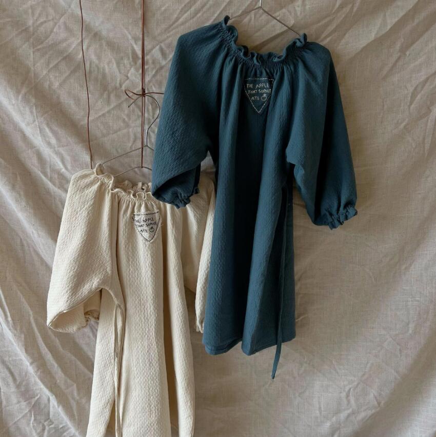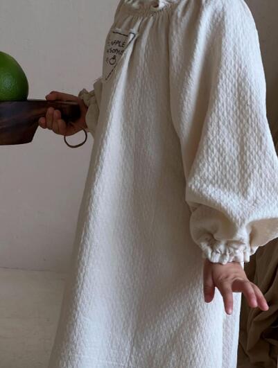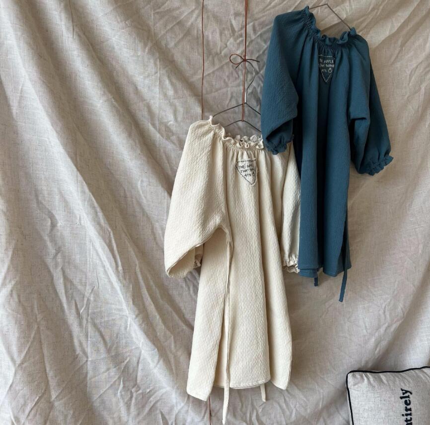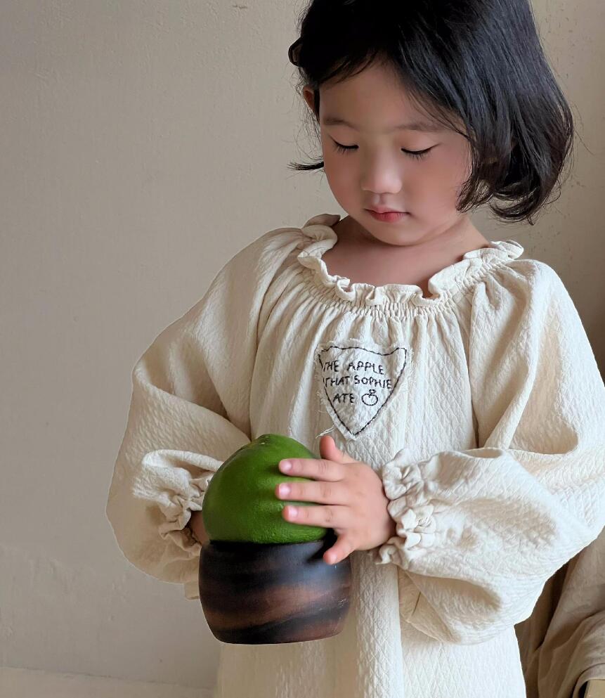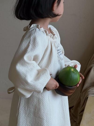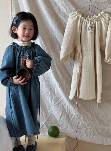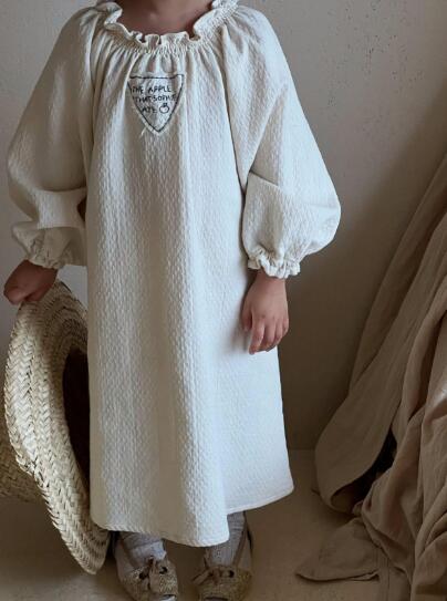 上品な刺繍とフリル襟が魅力的なキッズ用ロングワンピースです。