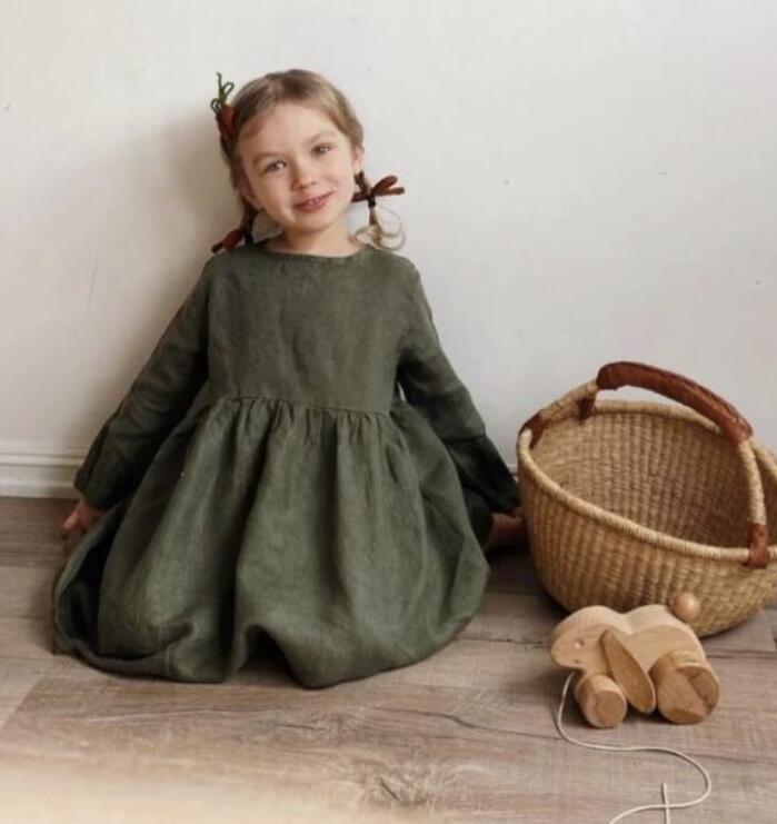 ナチュラルカラーが可愛いキッズ用ロングワンピースです。 柔らかな質感で着心地抜群、普段着からお出かけまで幅広くご活用いただけます。 90センチから130センチまでサイズ展開豊富で、成長に合わせてお選びいただけます。