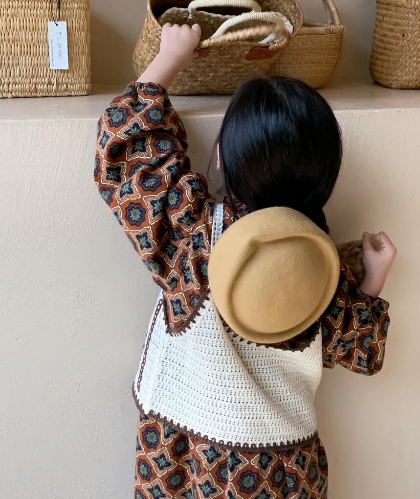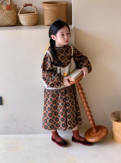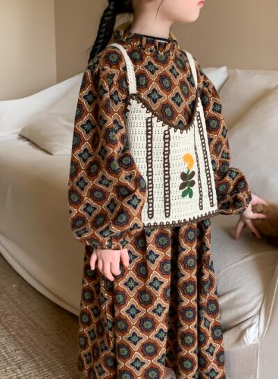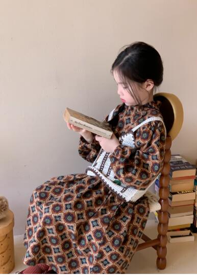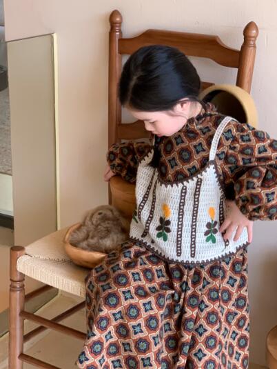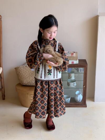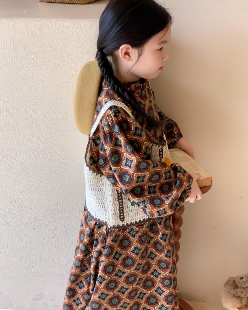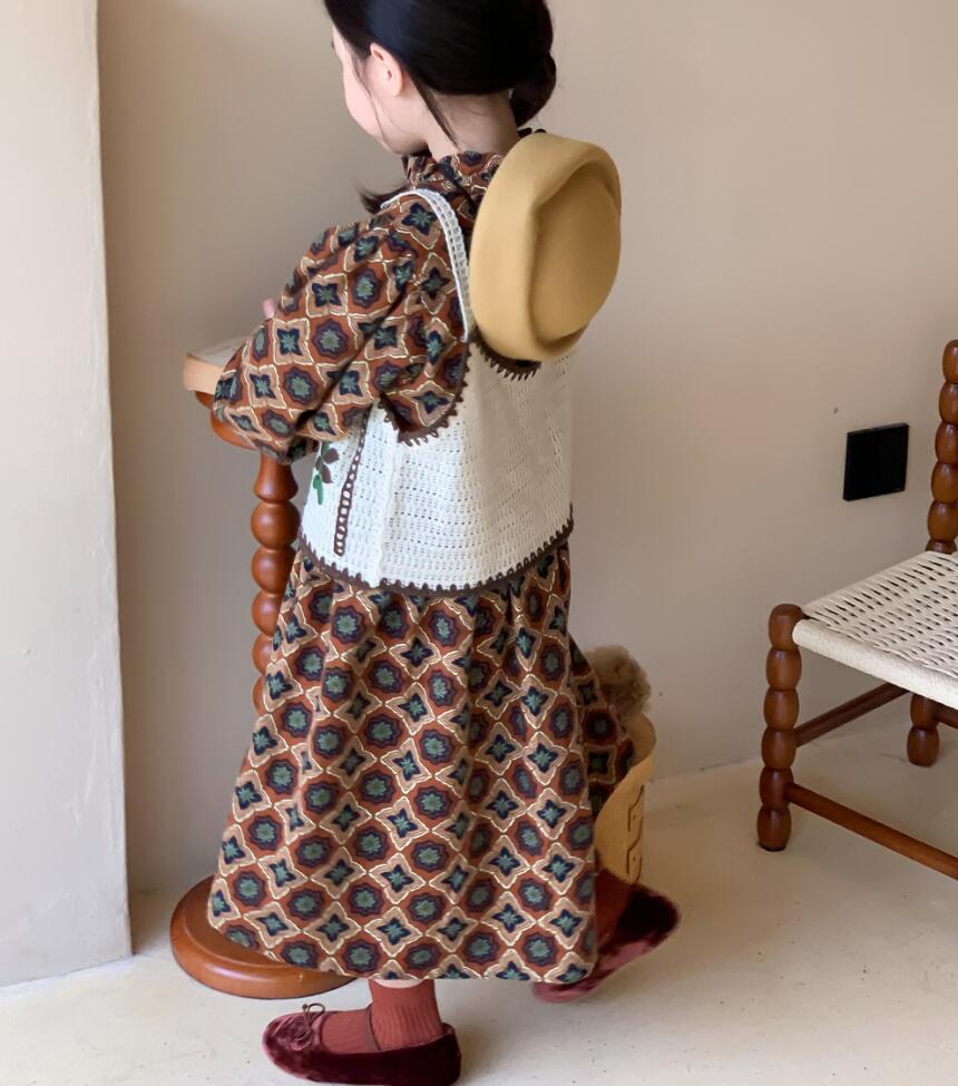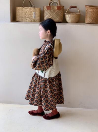 可愛らしい幾何学模様が特徴的なキッズ向けロングワンピースです。