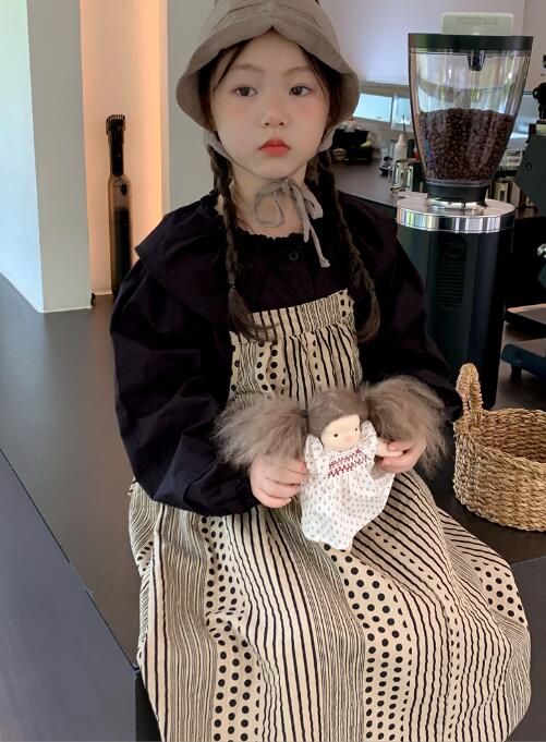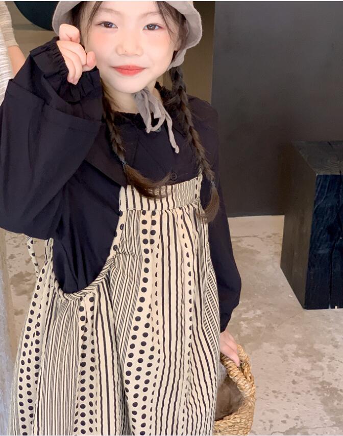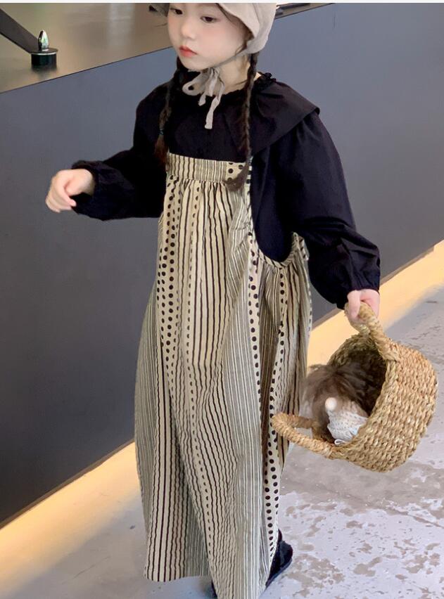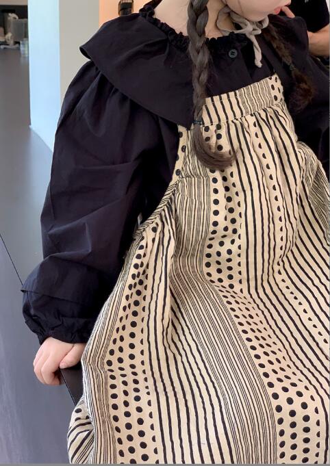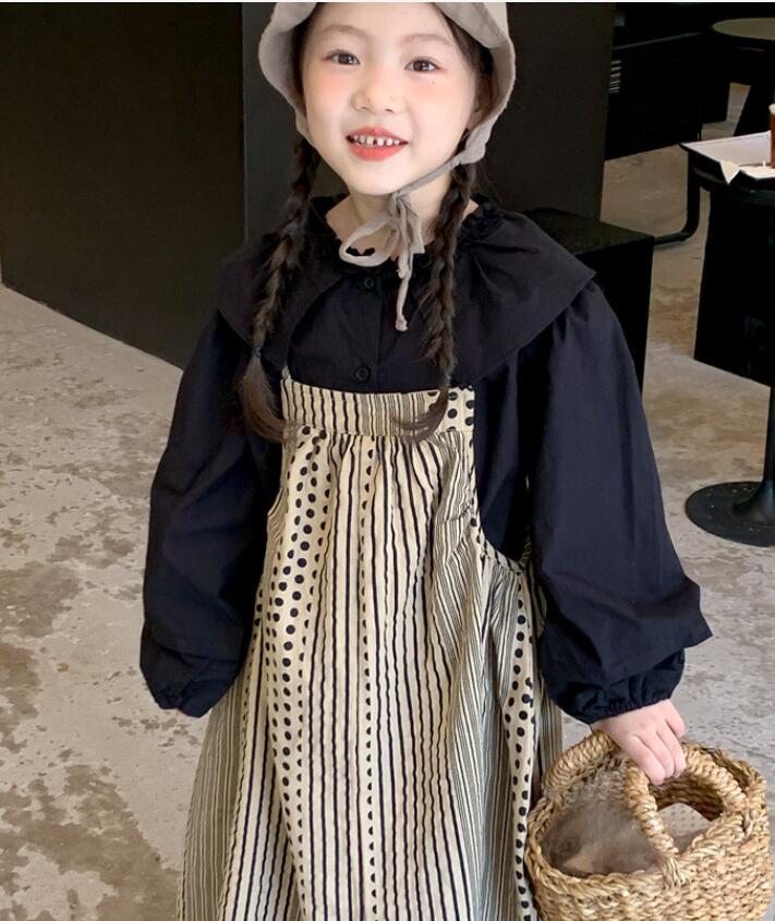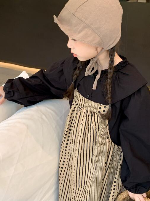 上品な襟付きシャツとストライプ柄のロングワンピースが組み合わせられており、別々でも着用可能。