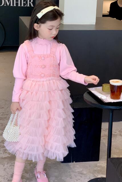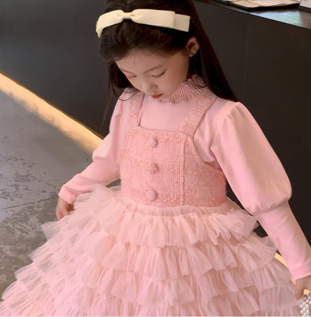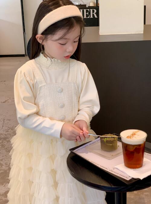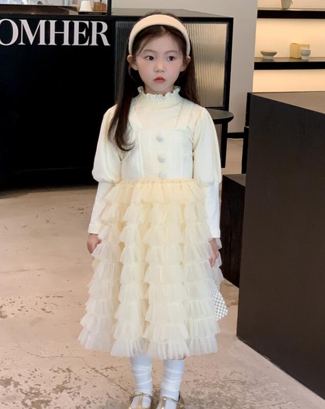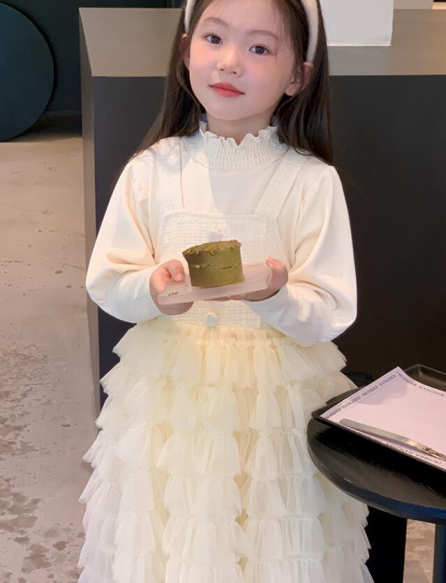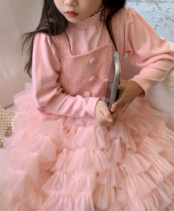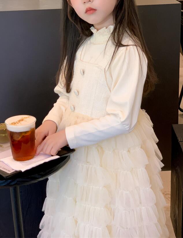 長袖のトップスと多層チュールスカートが一体になったデザインで、特別な日にもぴったり。