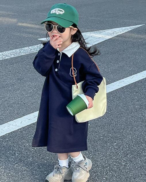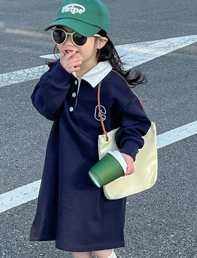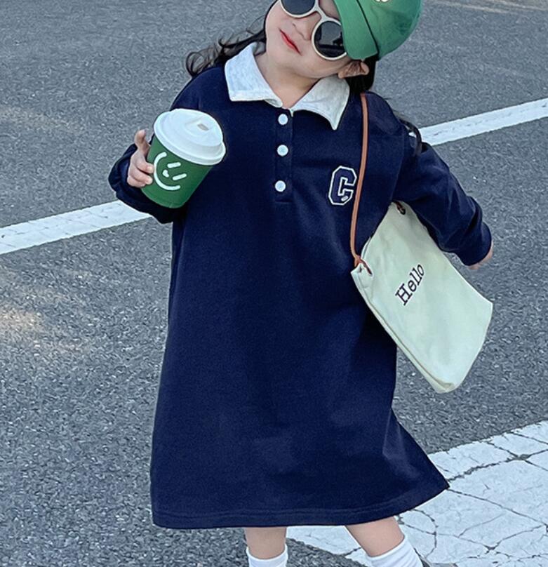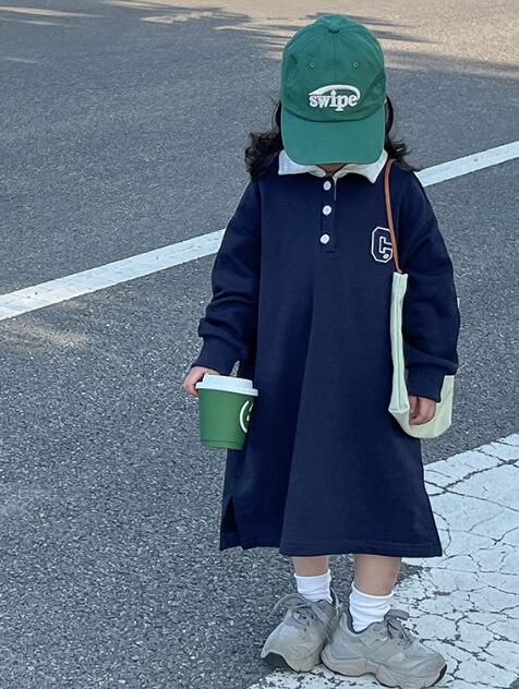 上品な襟付きデザインが魅力のキッズ向けロングワンピースです。