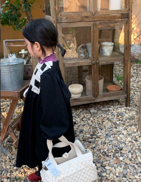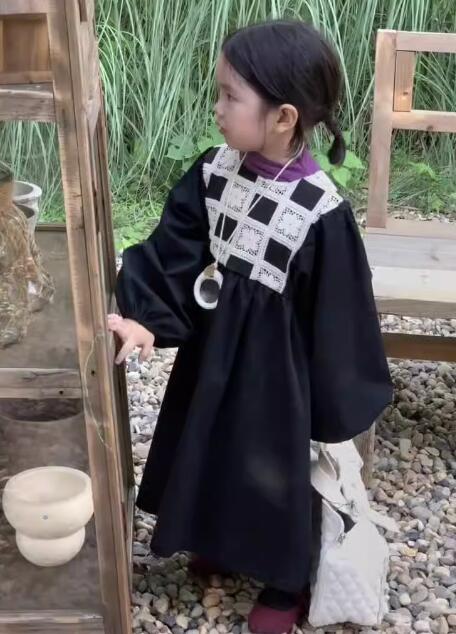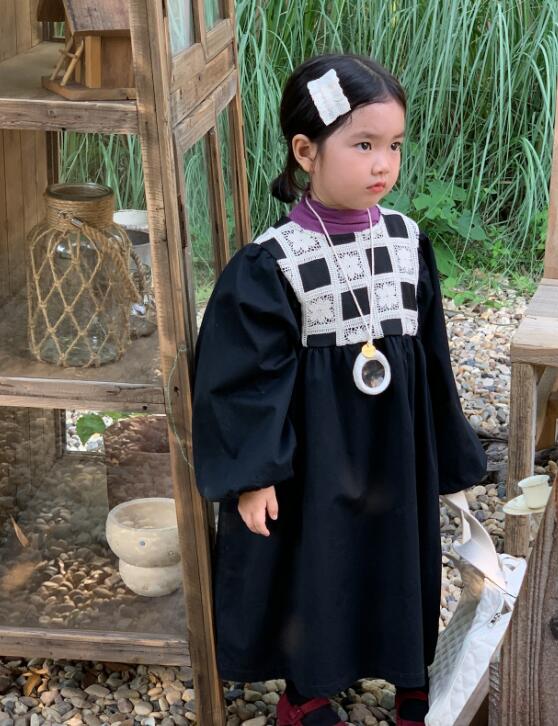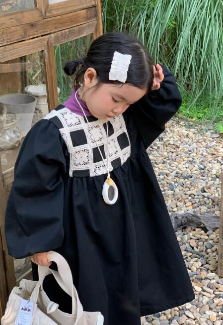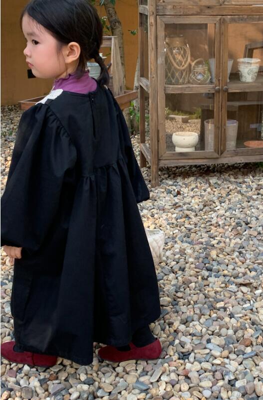 キッズ向けの上品な黒色ロングワンピースです。