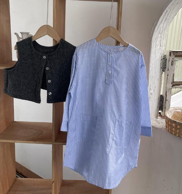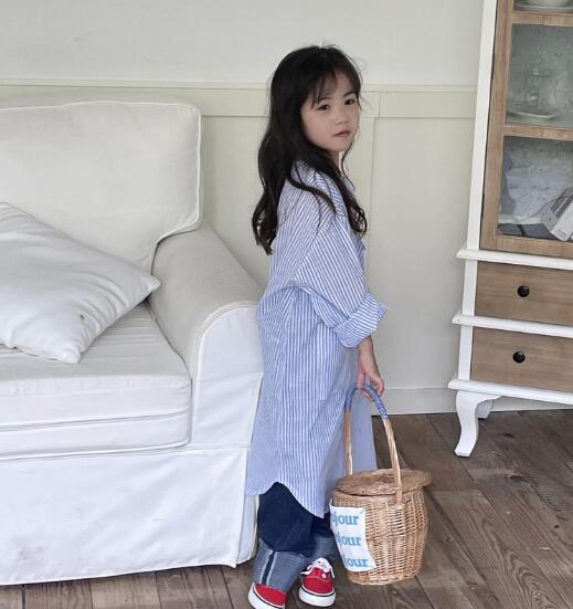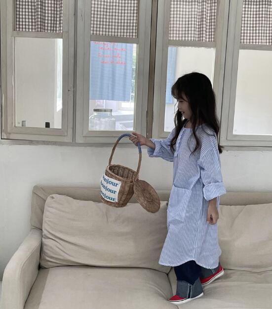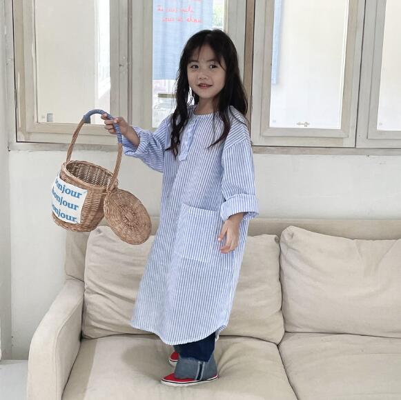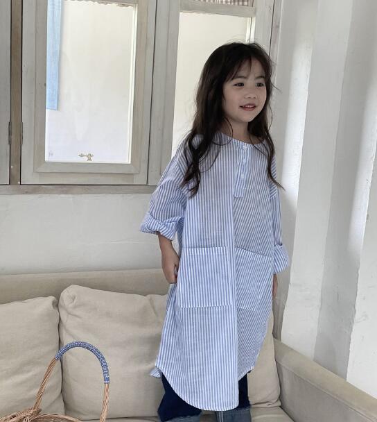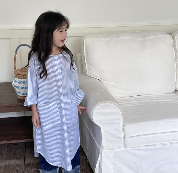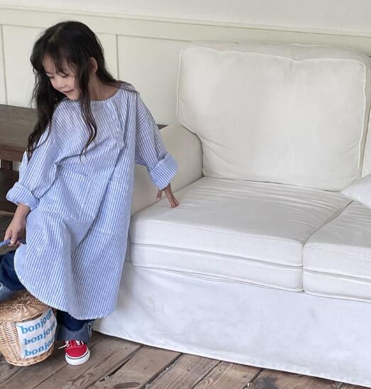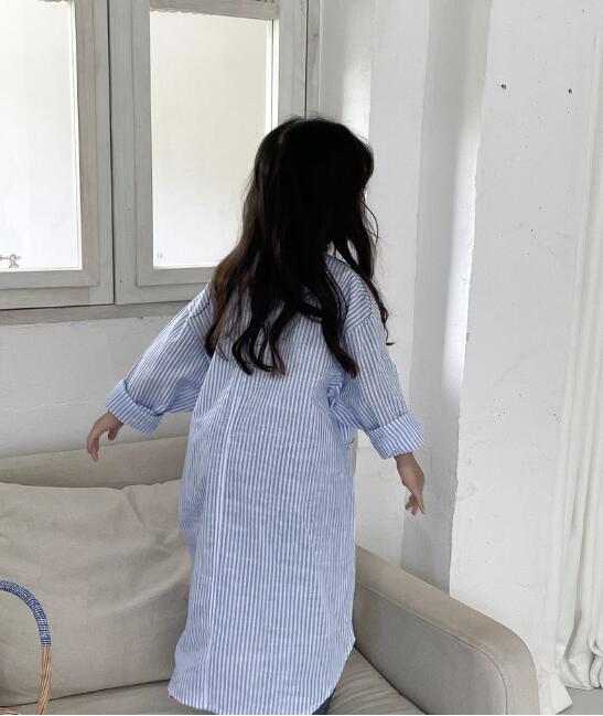 上品な縦縞模様が魅力的なキッズ向けロングワンピースです。