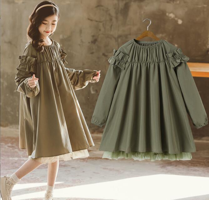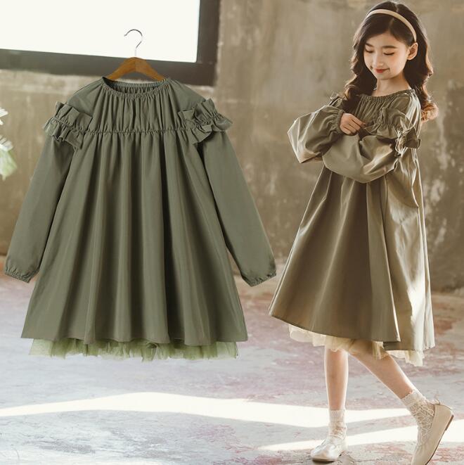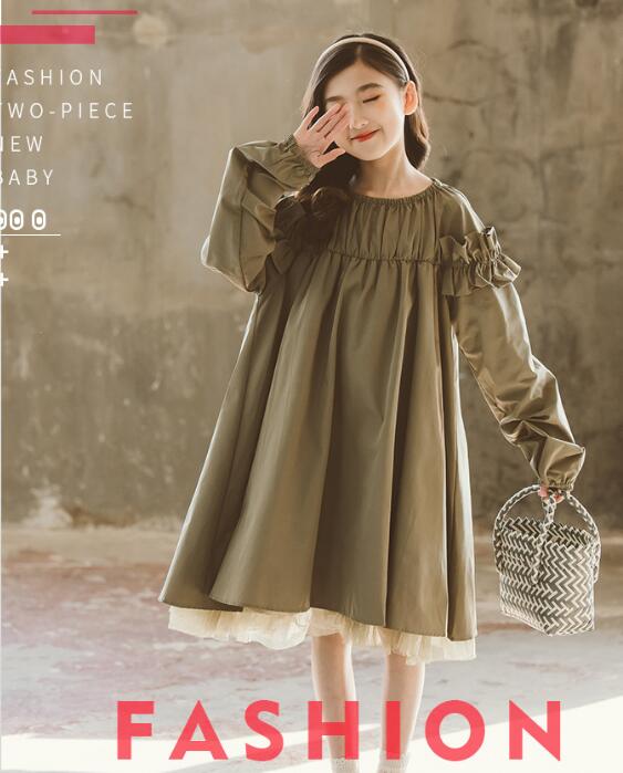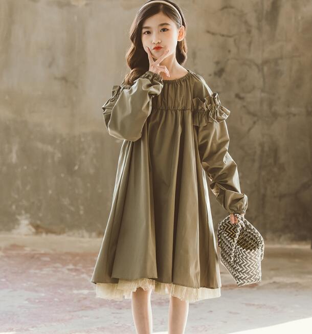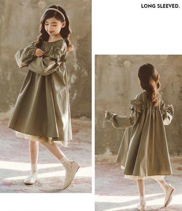 上品なフリル襟が可愛らしいキッズ向けロングワンピースです。