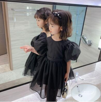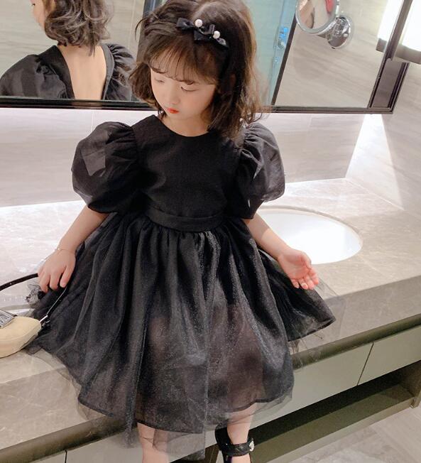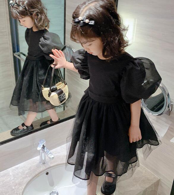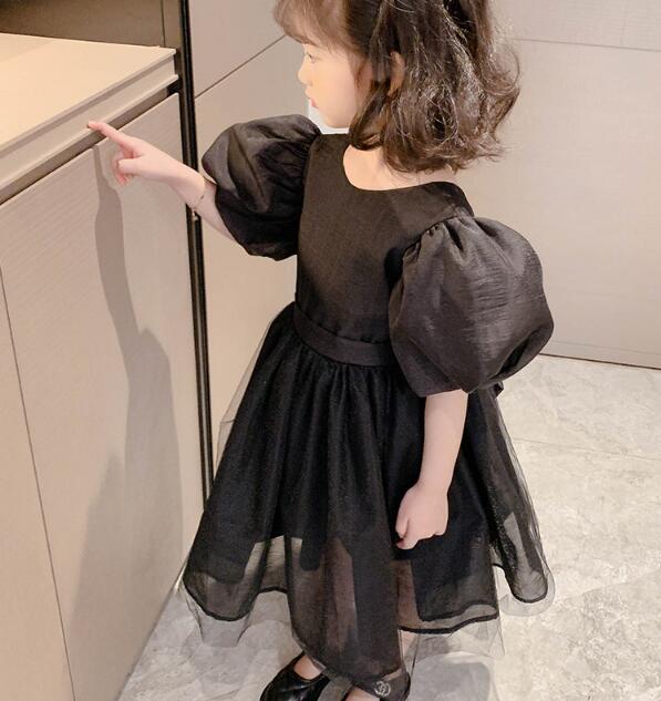 上品な黒色のキッズ向けロングワンピースです。