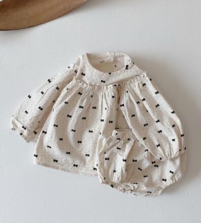 可愛いリボン柄が散りばめられたキッズ用のワンピースとパンツのセットアップです。 ふんわりとした袖が特徴的で、ロングワンピースとしても着回しできるデザイン。 柔らかい素材で動きやすく、普段着からお出かけまで幅広いシーンで活躍します。