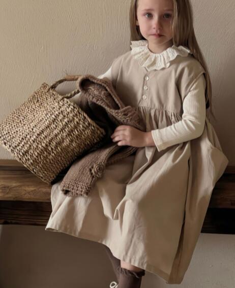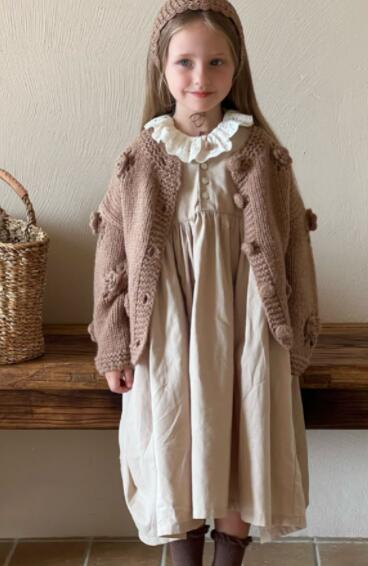 上品なフリル襟が可愛らしいキッズ用ロングワンピースです。