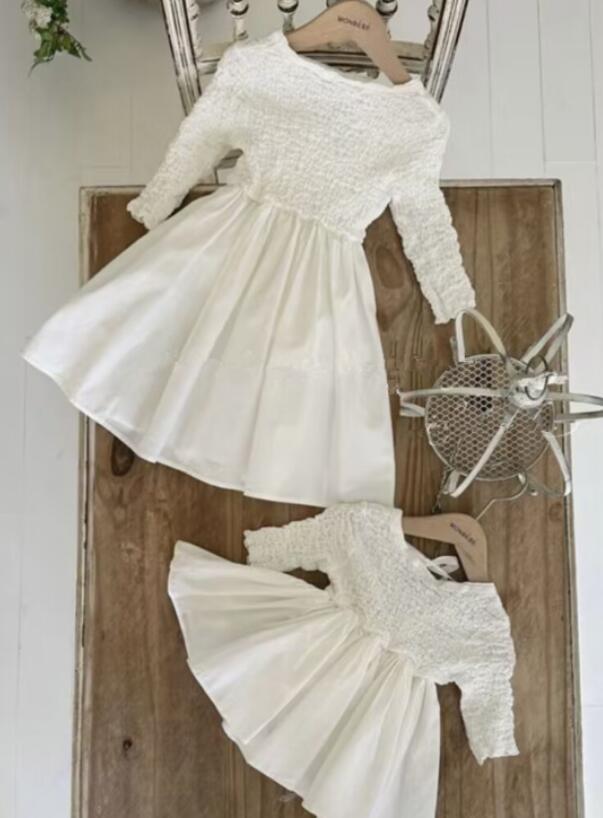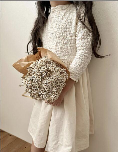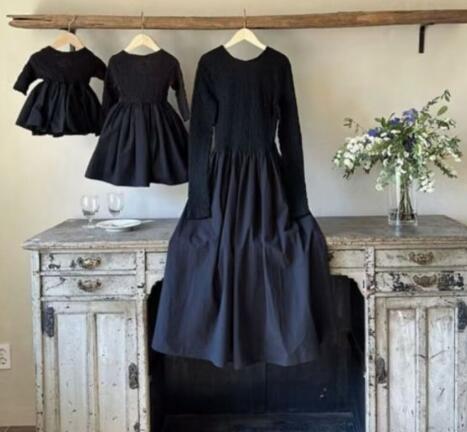 袖部分は温かみのあるニット素材で、スカート部分はふんわりと広がる優雅なデザイン。