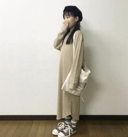 やわらかなワッフル生地で作ったキッズ向けロングワンピースです。