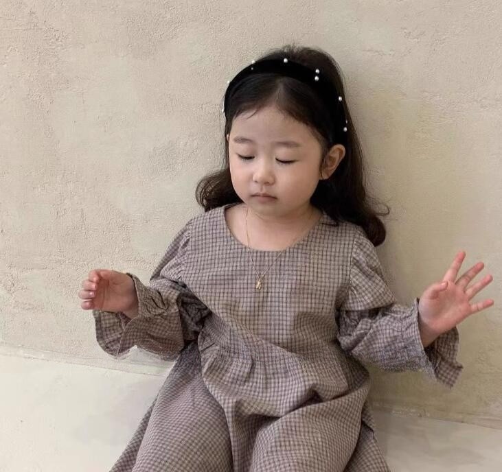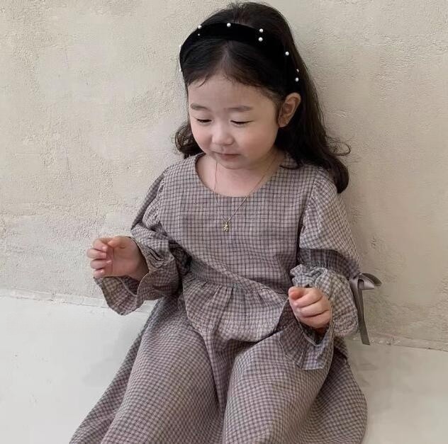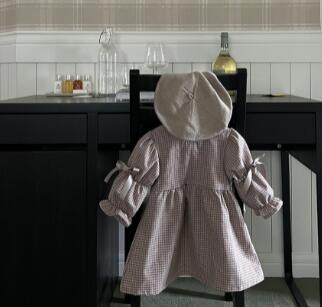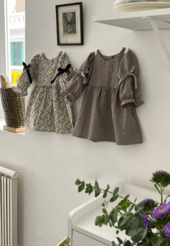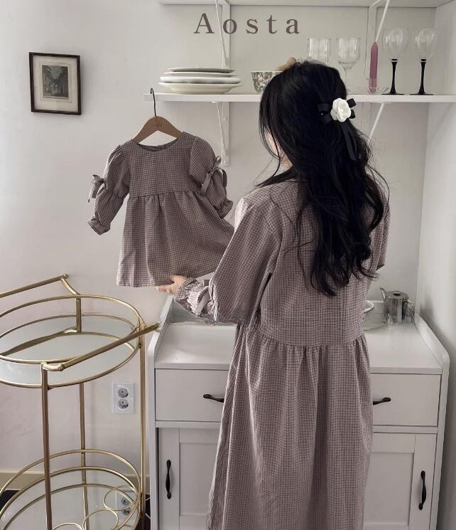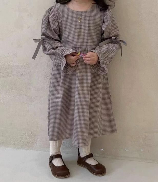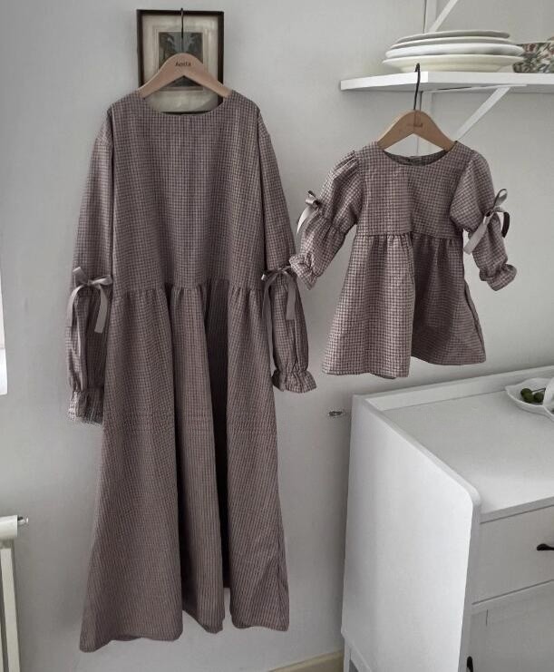 上品なチェック柄が魅力的な親子でお揃いできるキッズ用ロングワンピースです。