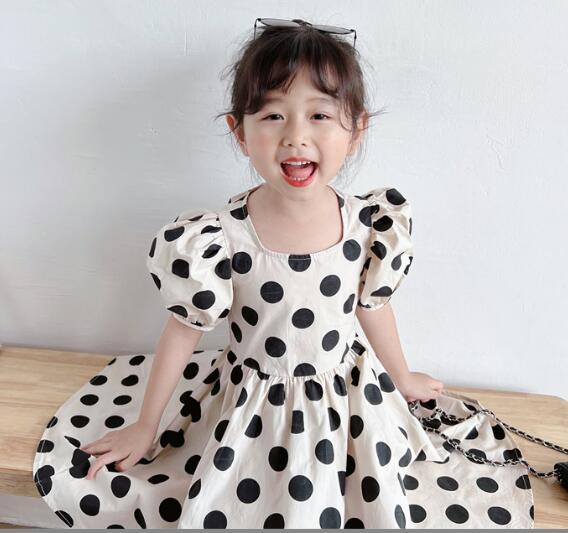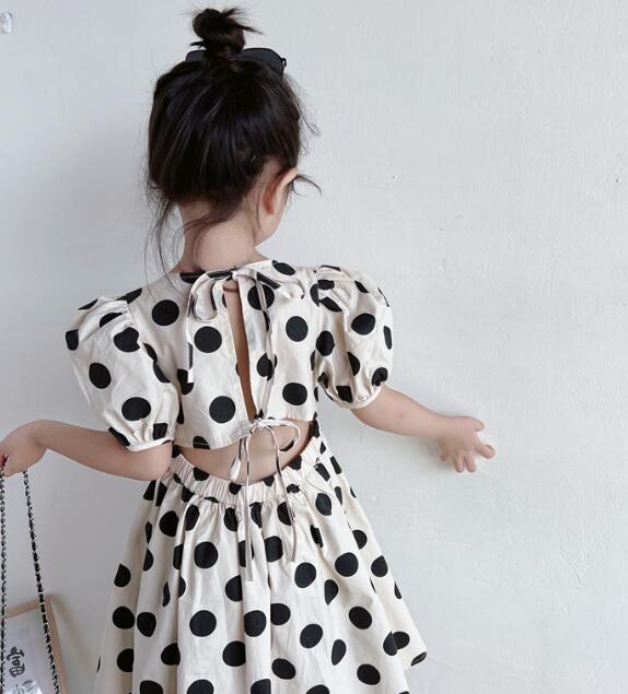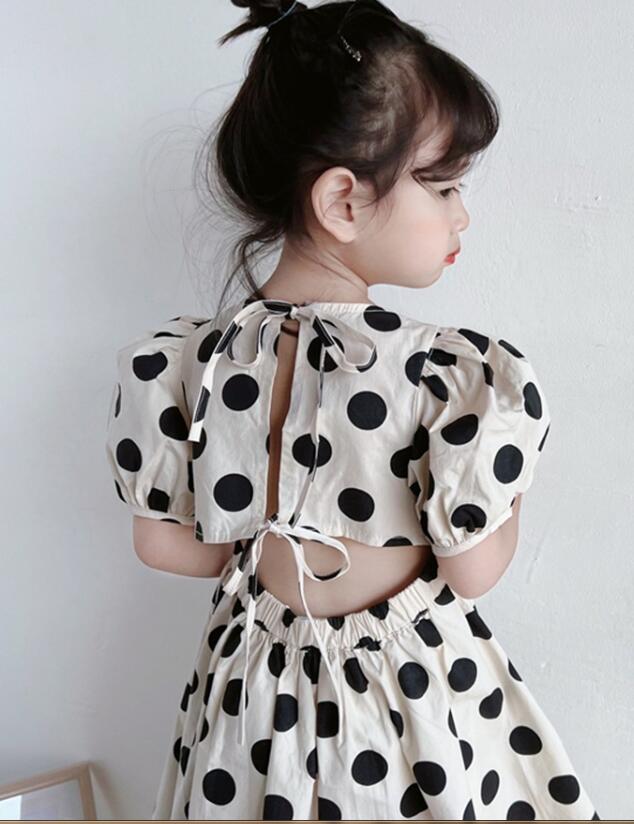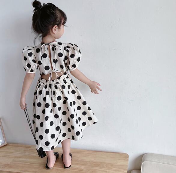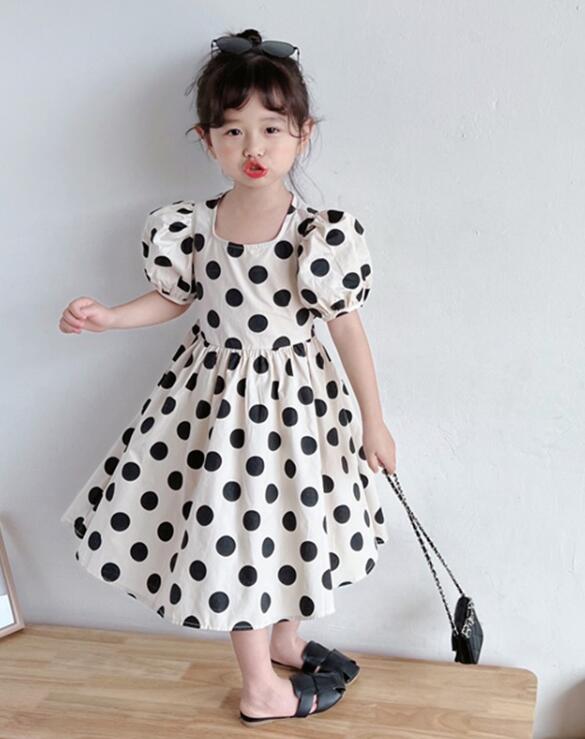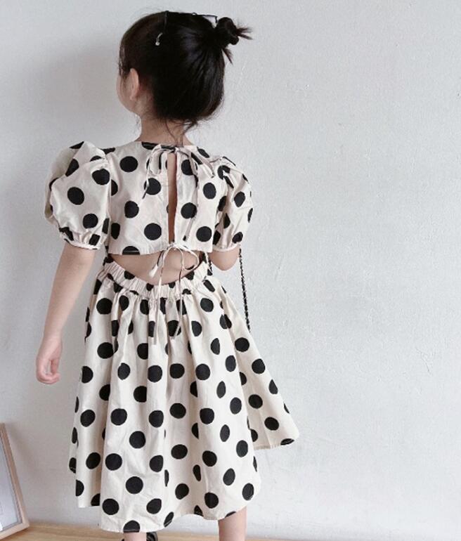 キッズ向けの可愛い水玉柄ロングワンピースです。
