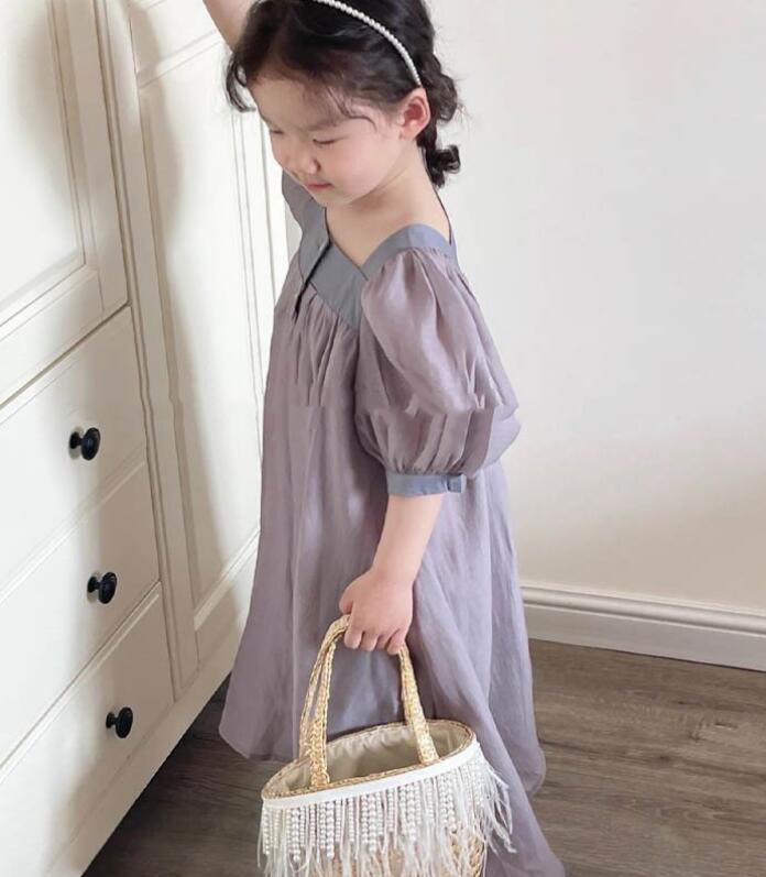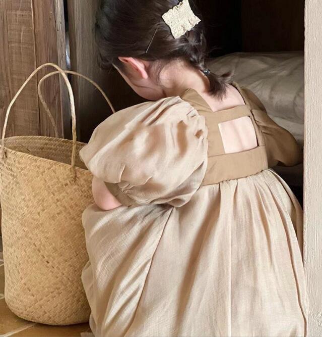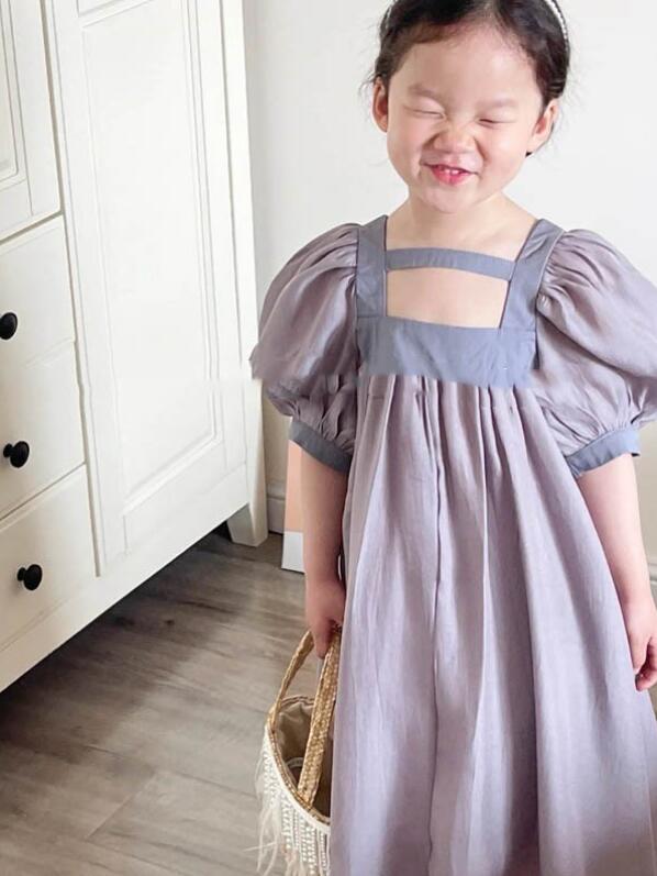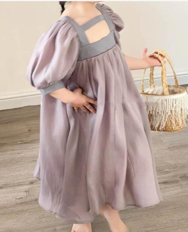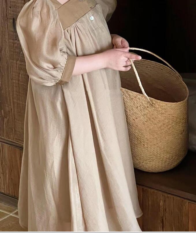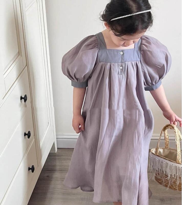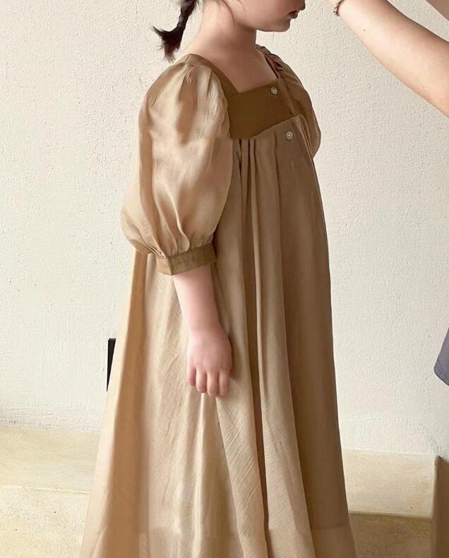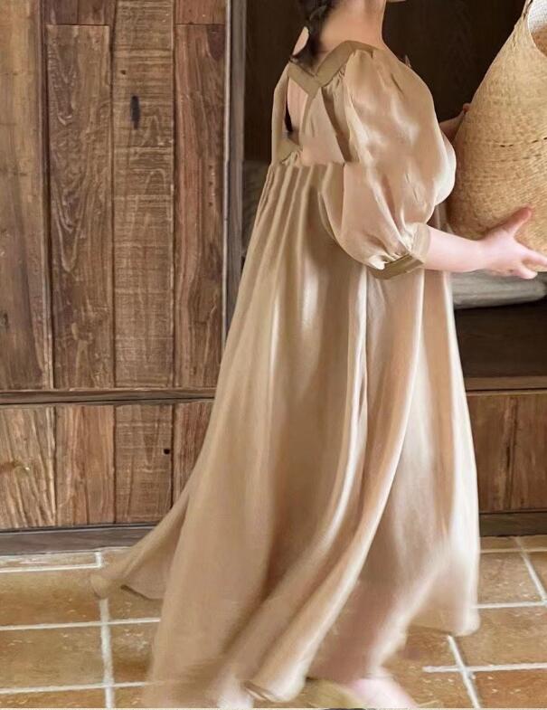 可愛らしいパフスリーブが特徴的なキッズ向けロングワンピースです。