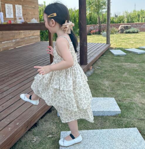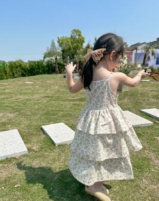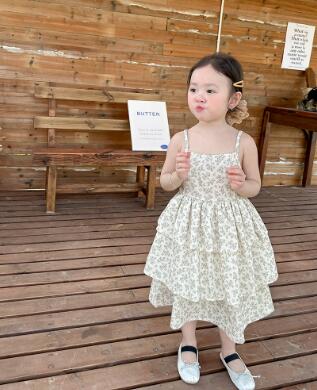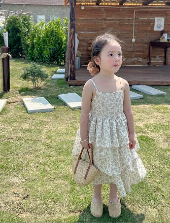 お洒落なキッズ用花柄ロングワンピースが登場しました。 細い肩紐とふんわりシルエットが可愛らしく、普段着からお出かけまで幅広く活躍します。 涼しげな素材で夏にぴったり。サイズは80から140センチまでご用意しております。