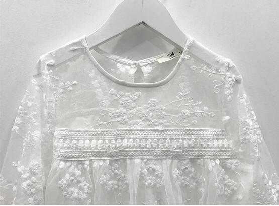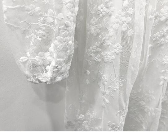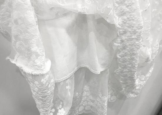 繊細なレース装飾が施された長袖デザインで、優雅な印象を演出します。