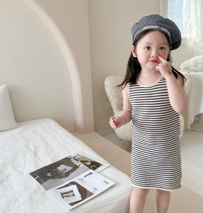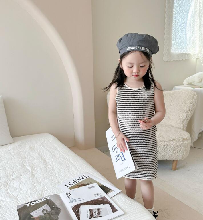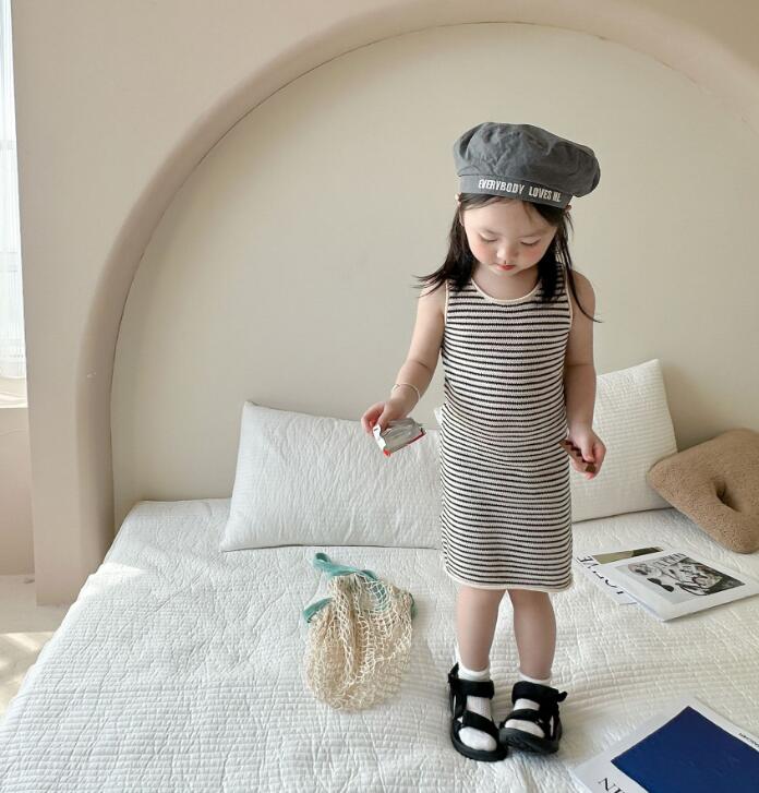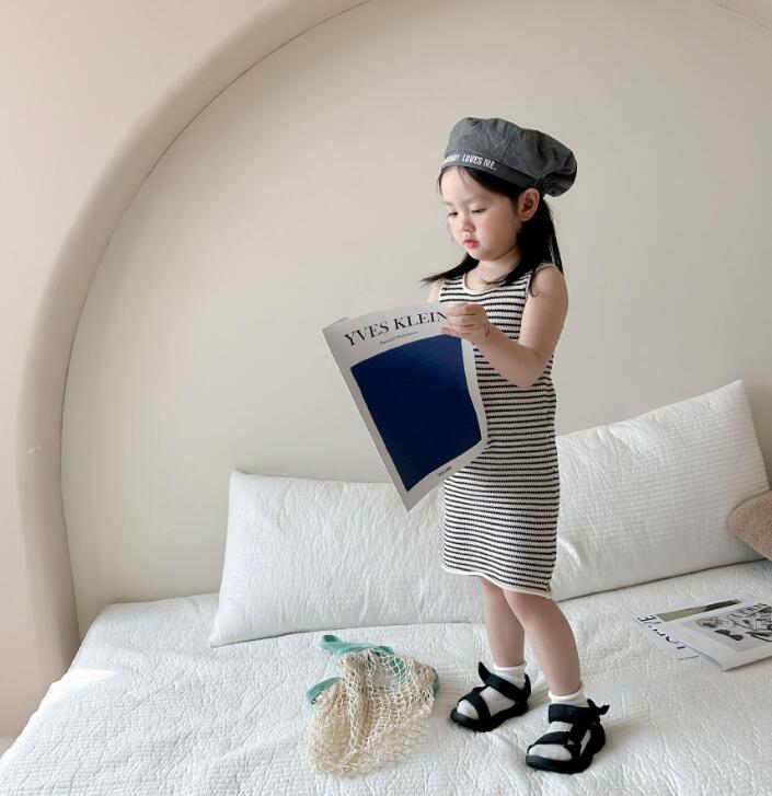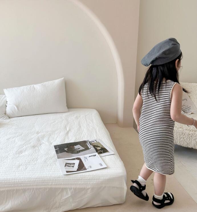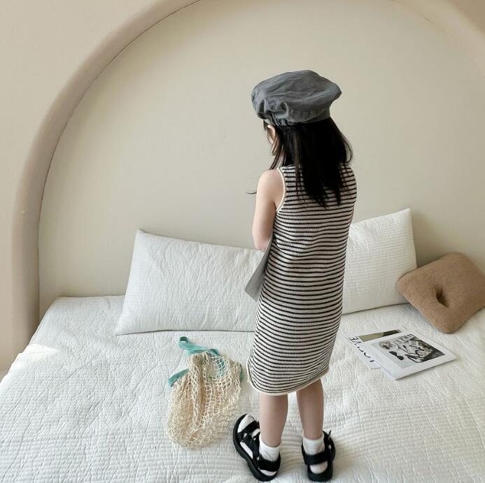 キッズ向けの可愛い縞模様ロングワンピースです。
