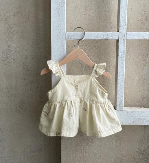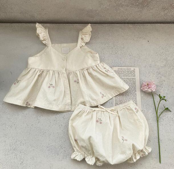 可愛らしい花柄が特徴的なキッズ用キャミソールとブルマの上下セットです。