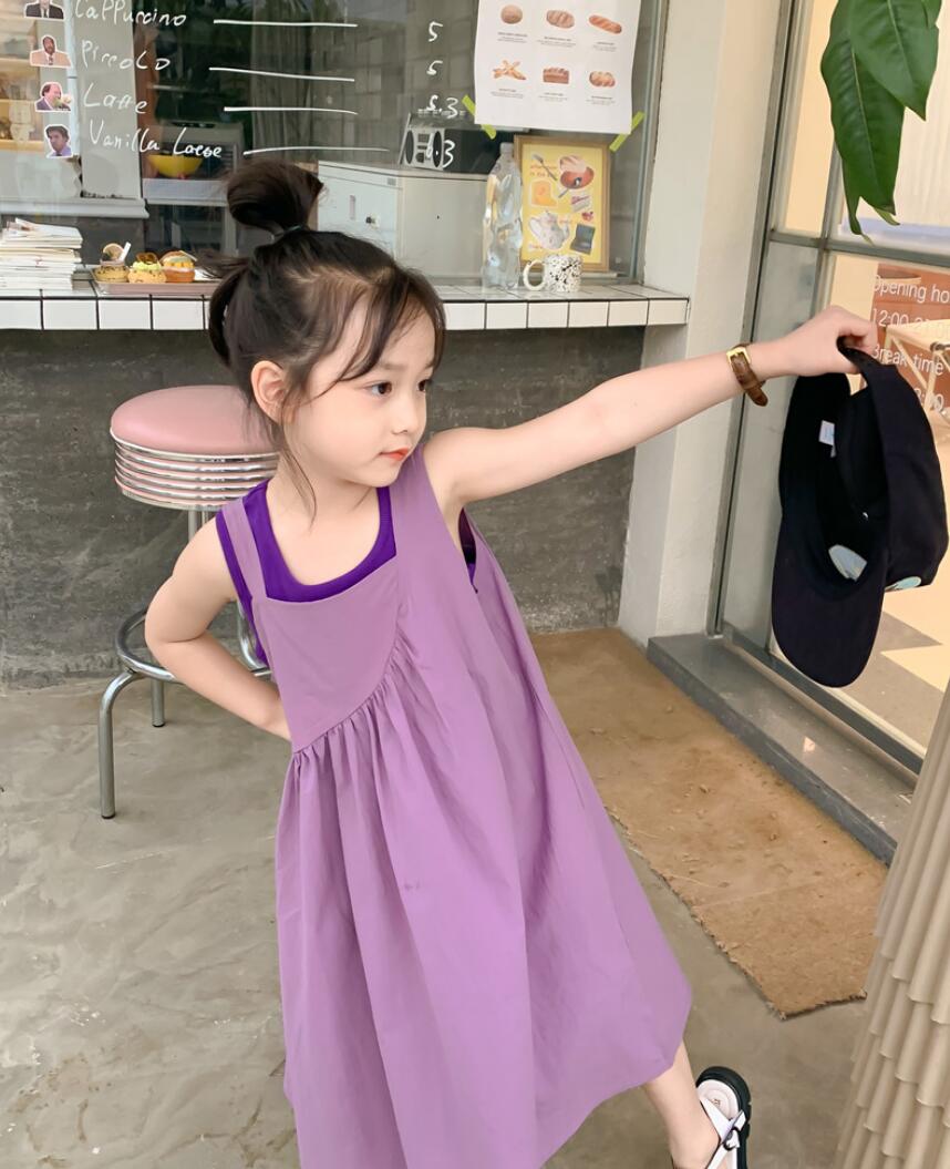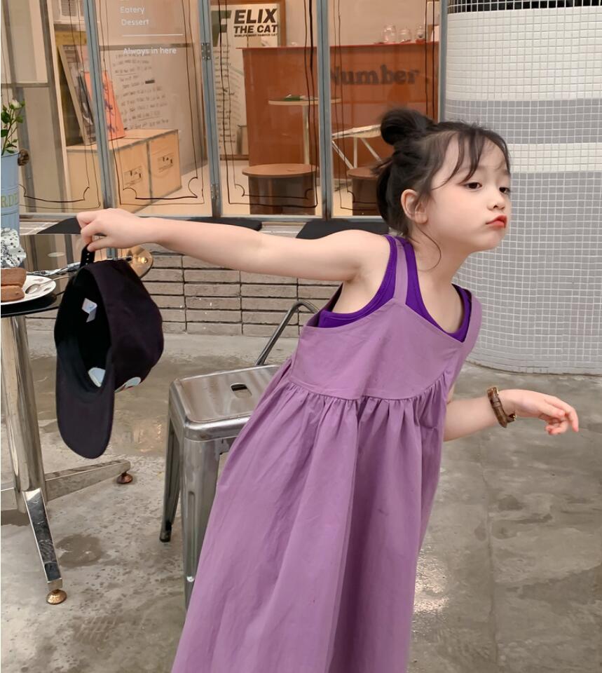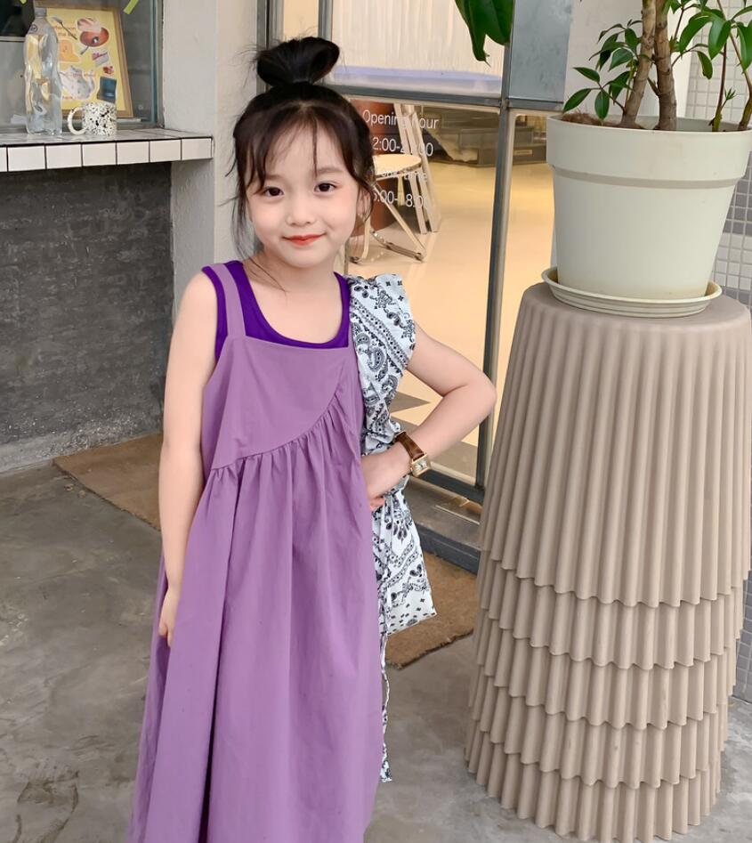 キッズ用の可愛いベスト重ね着風ロングワンピースです。