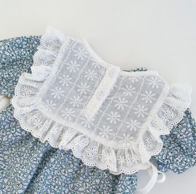 白いレースの襟元が上品で、成長に合わせてサイズ調整も可能です。
