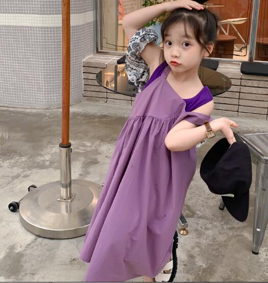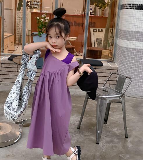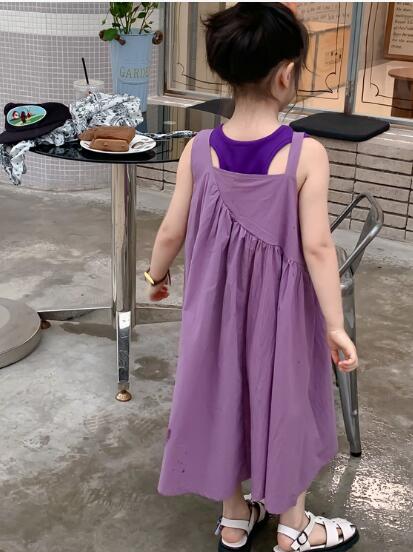 上品な紫色が美しいキッズ用ロングワンピースです。