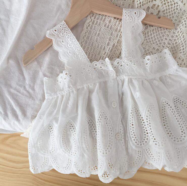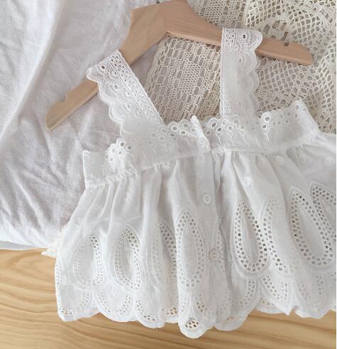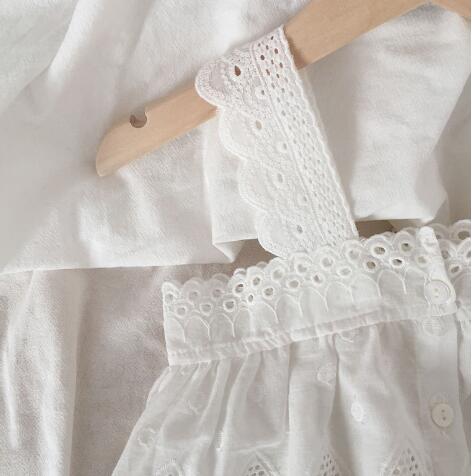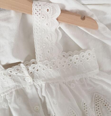 上品な白いレース刺繍が美しいキッズ用キャミソールワンピースです。