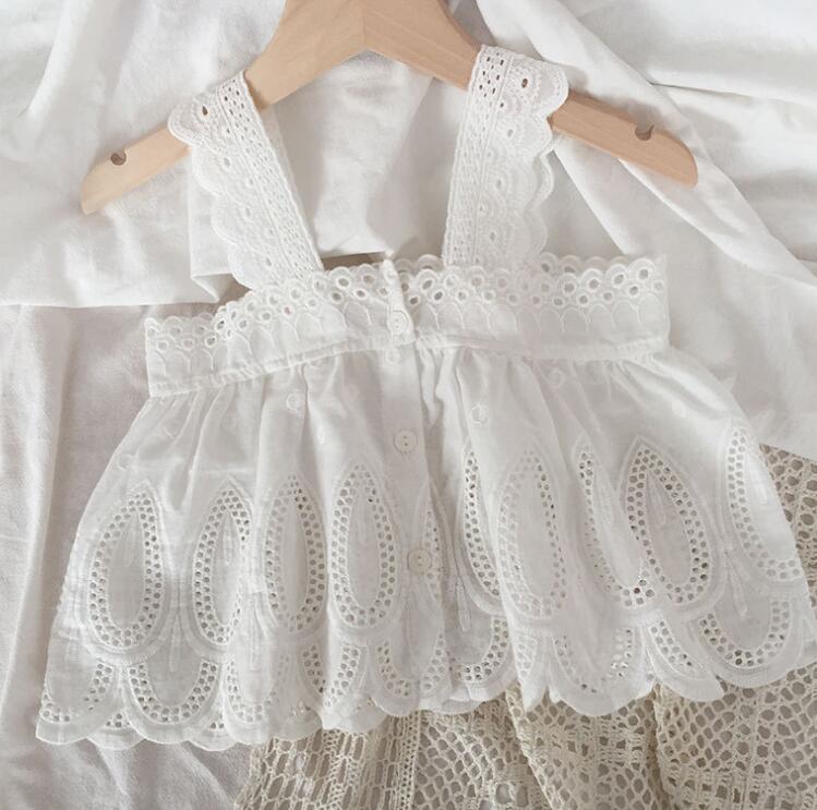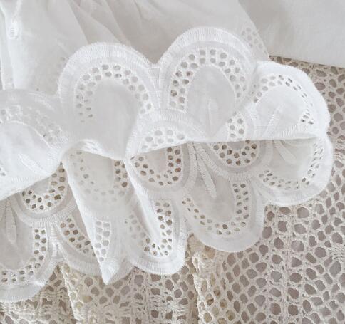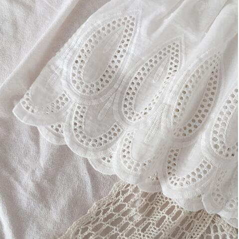 繊細な刺繍模様とスカラップ裾が女の子らしさを演出します。