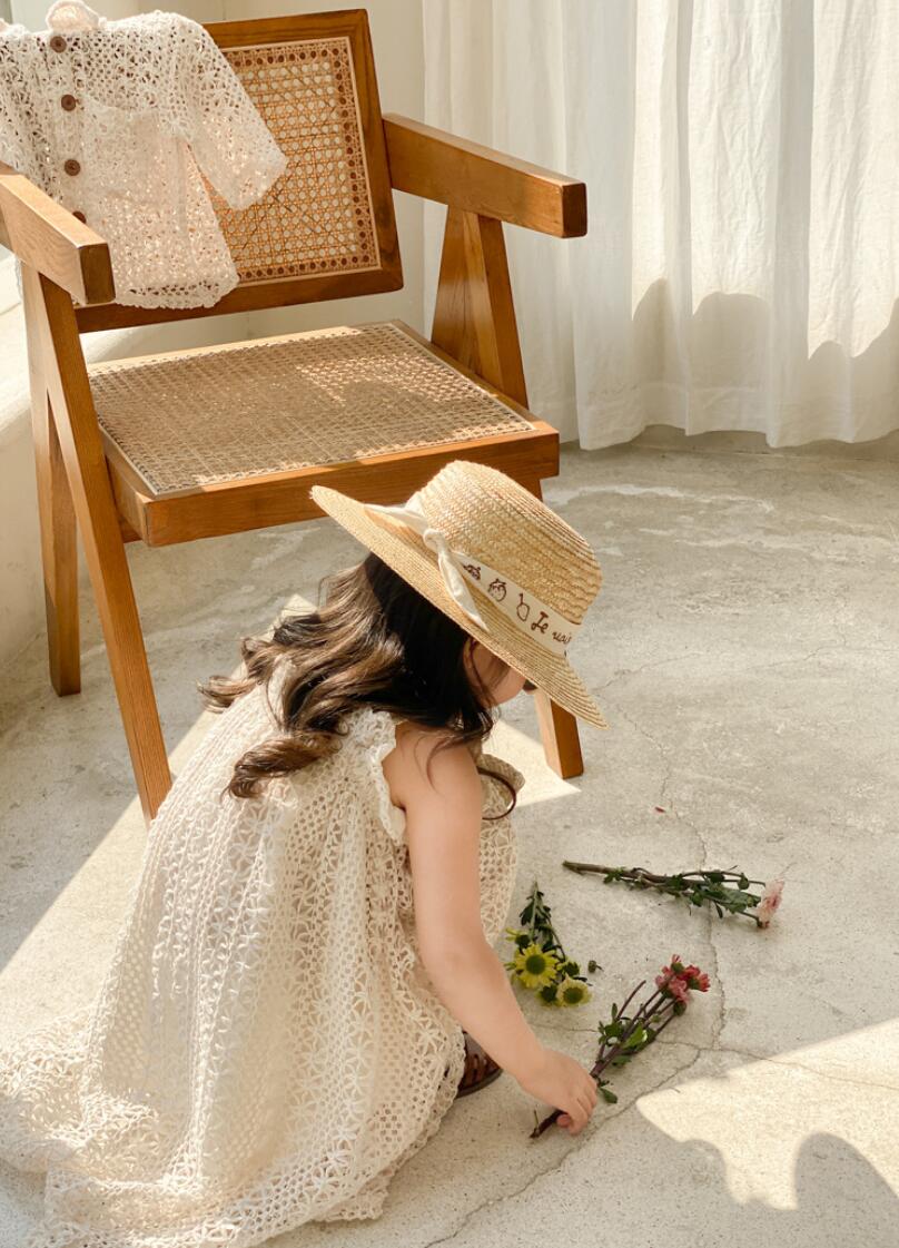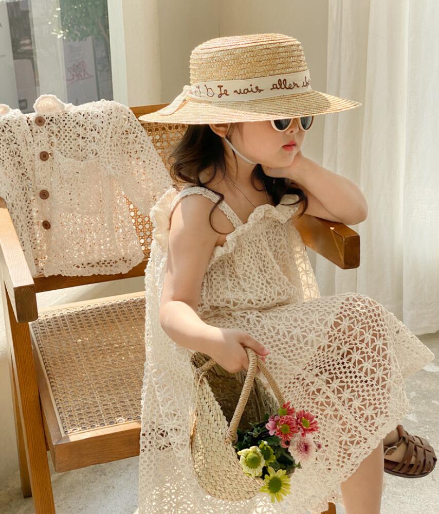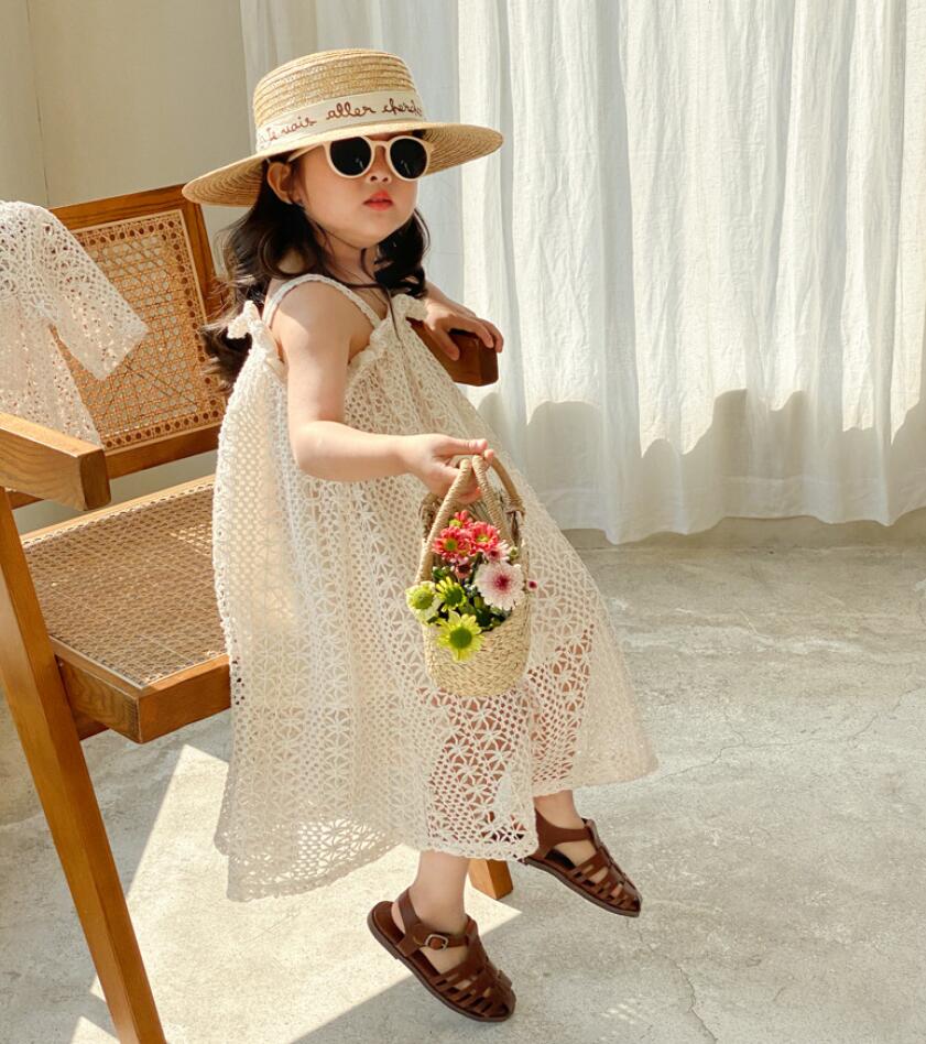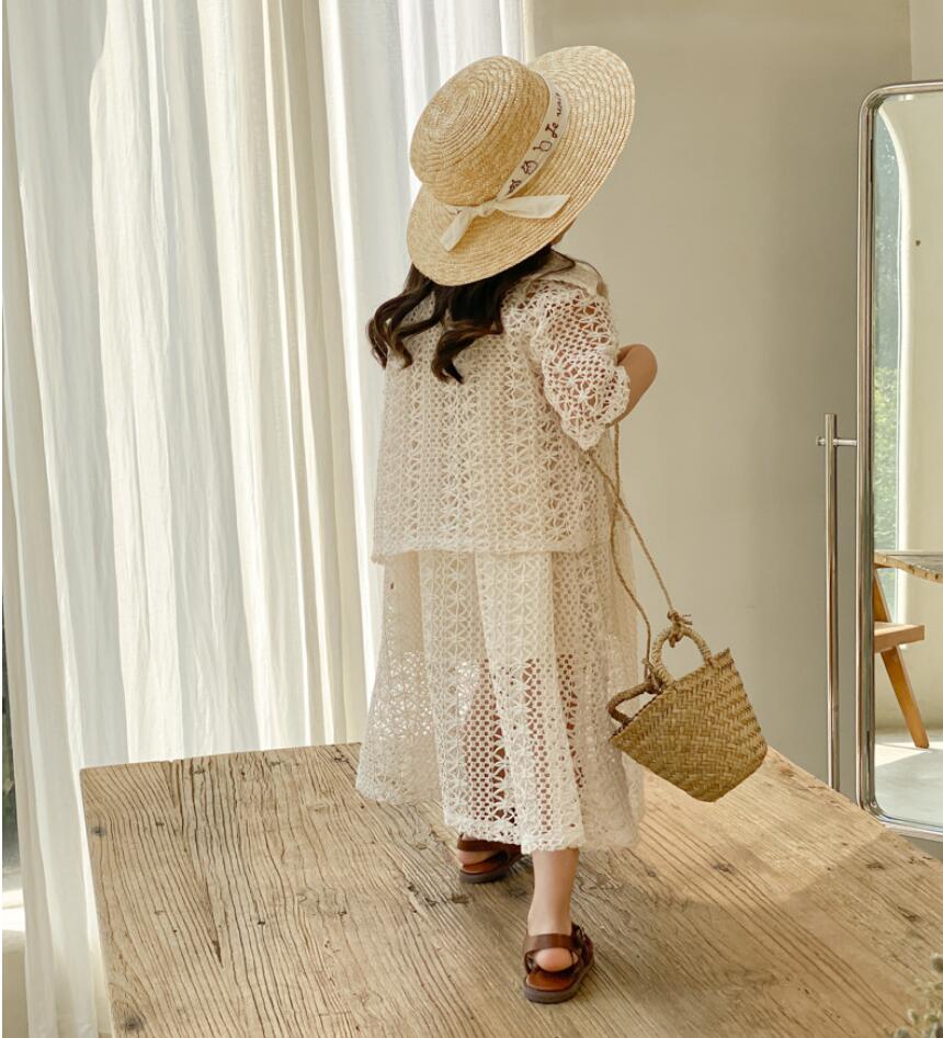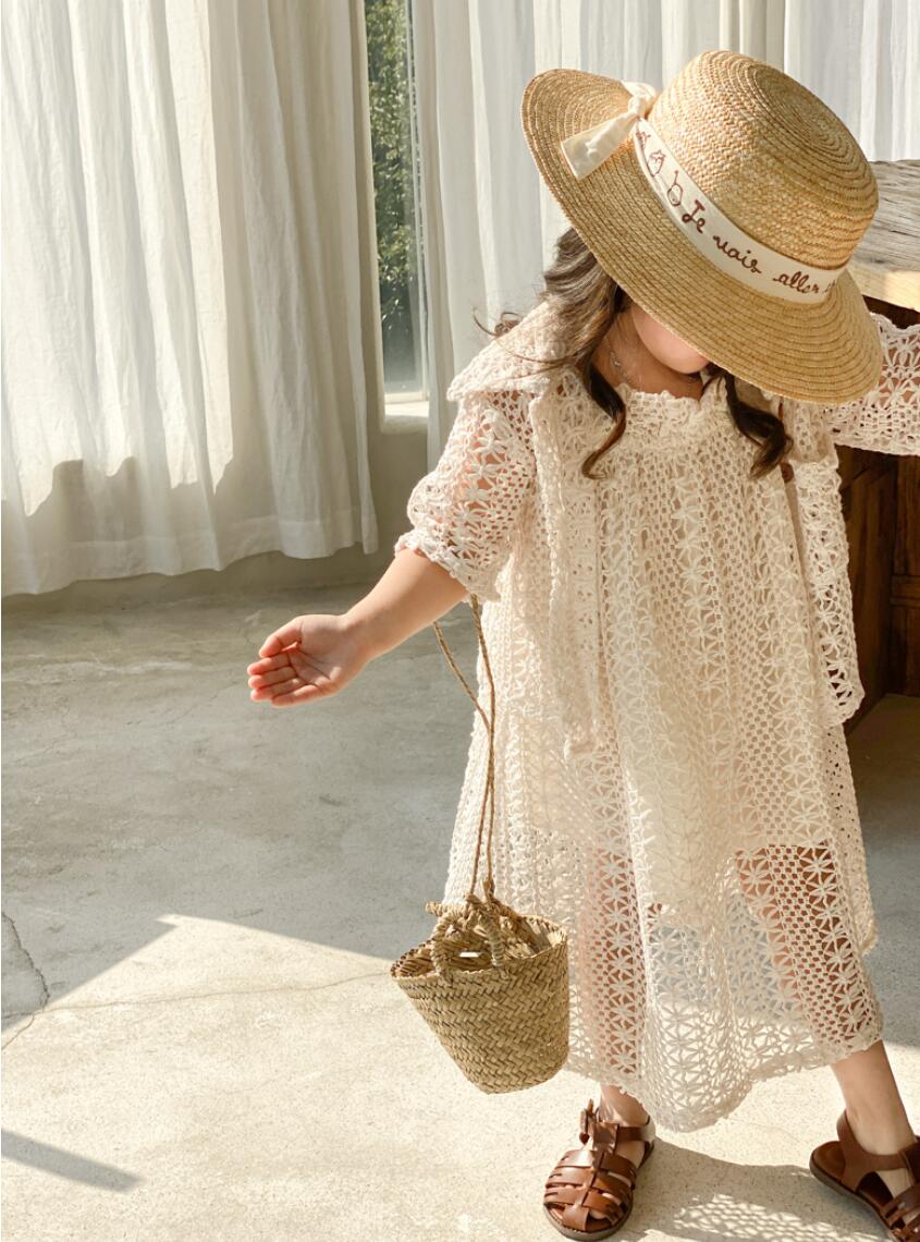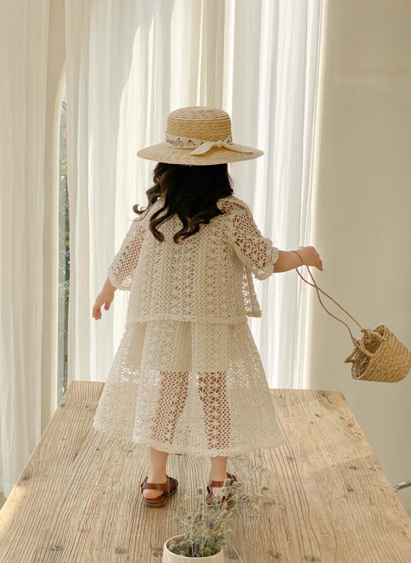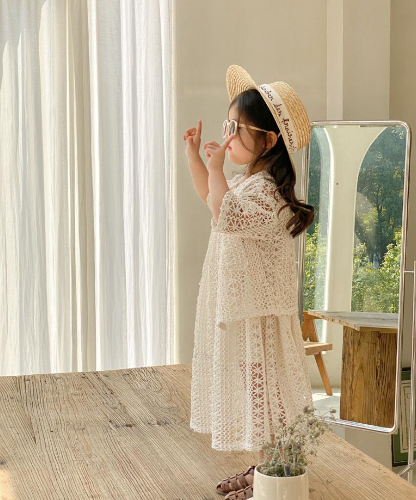 上品なレース編みが美しいキッズ用ロングワンピースです。