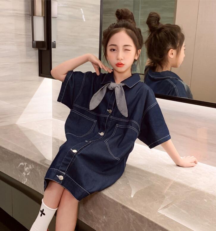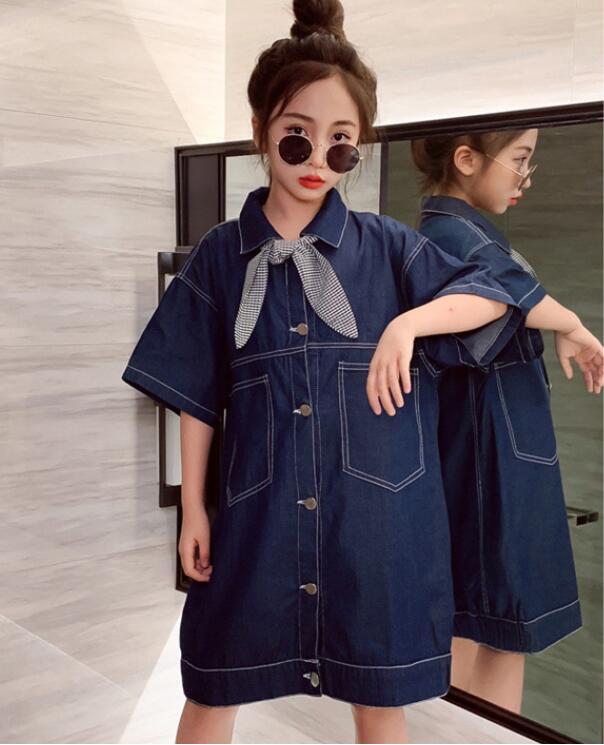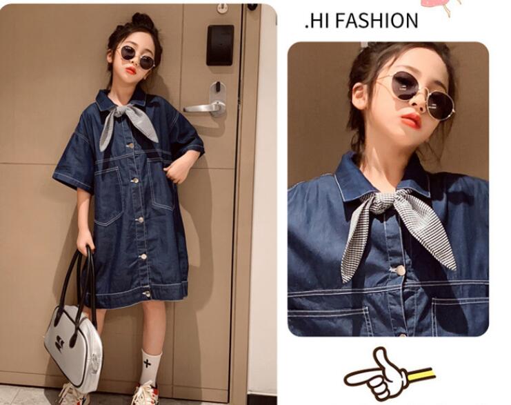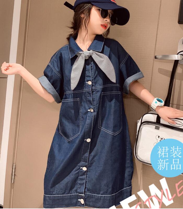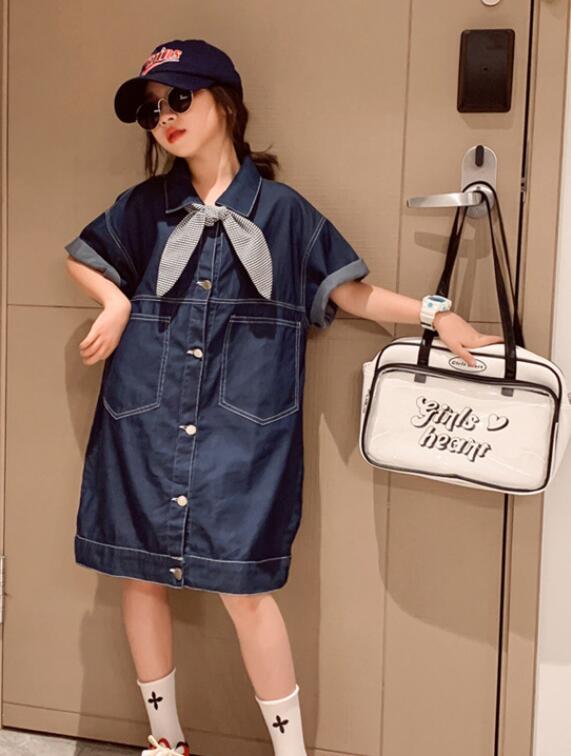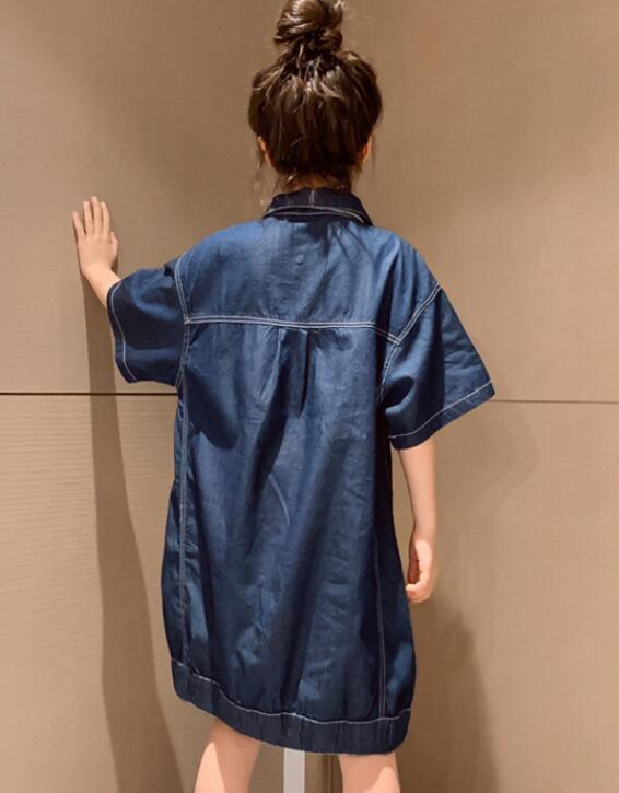 キッズ女の子にぴったりのデニム素材ロングワンピースです。