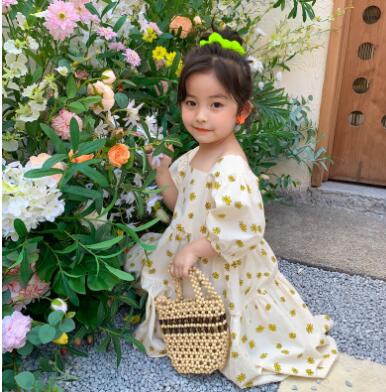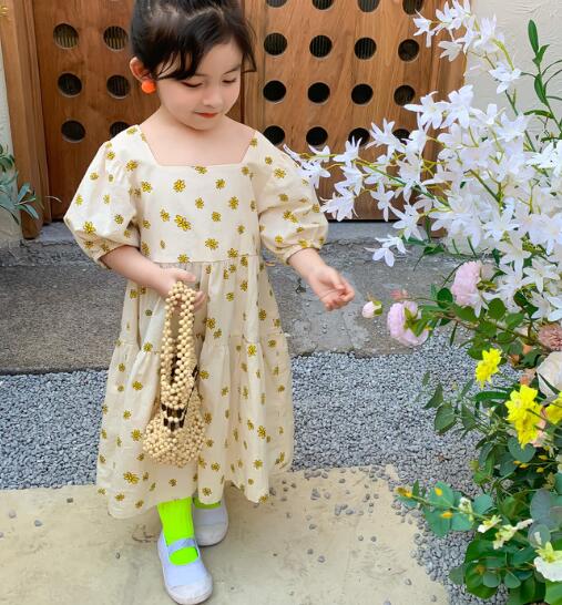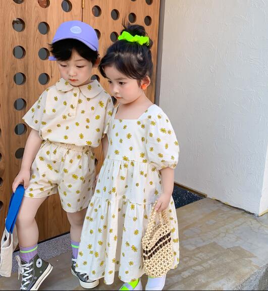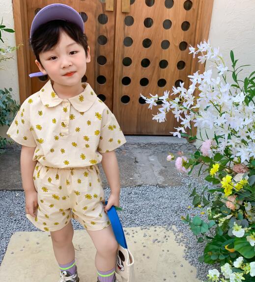 可愛い黄色い花柄が印象的なキッズ用セットアップです。