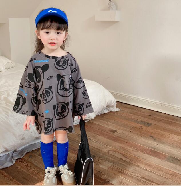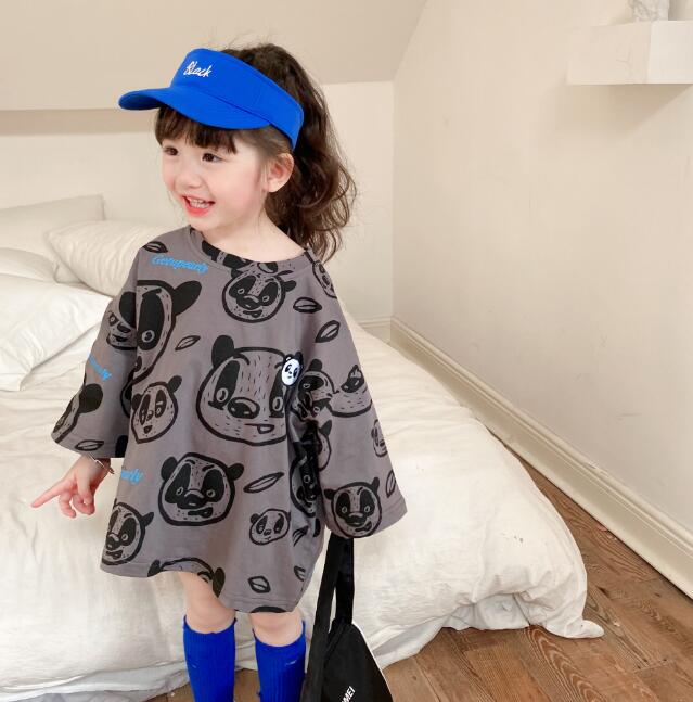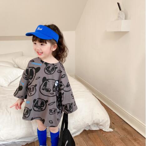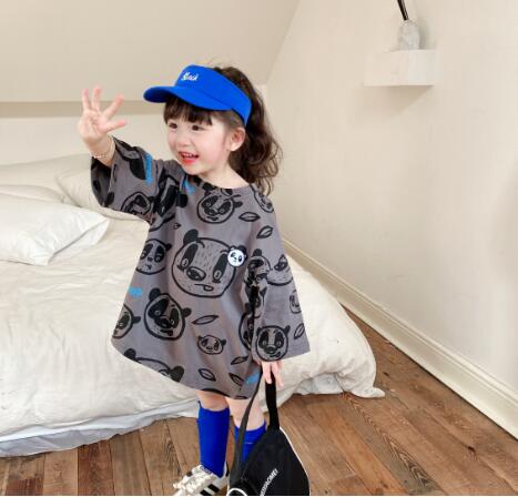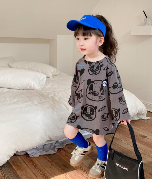 可愛い動物の顔がプリントされたキッズ用ロングワンピースです。
