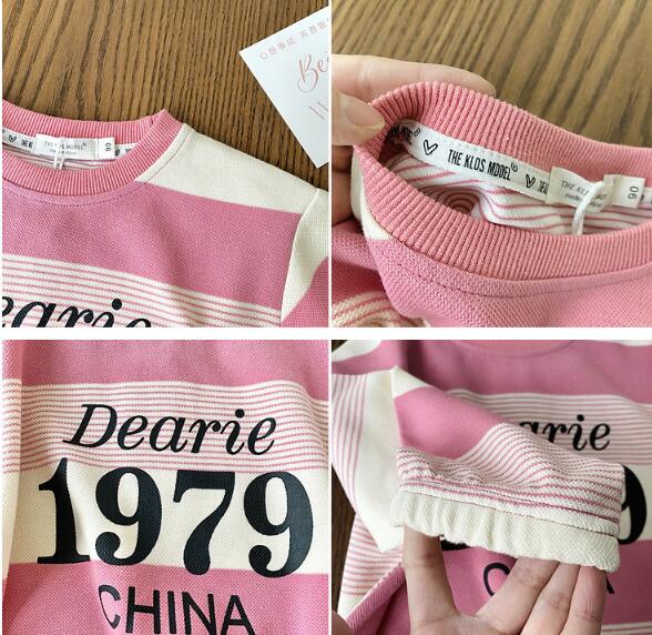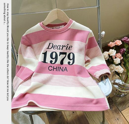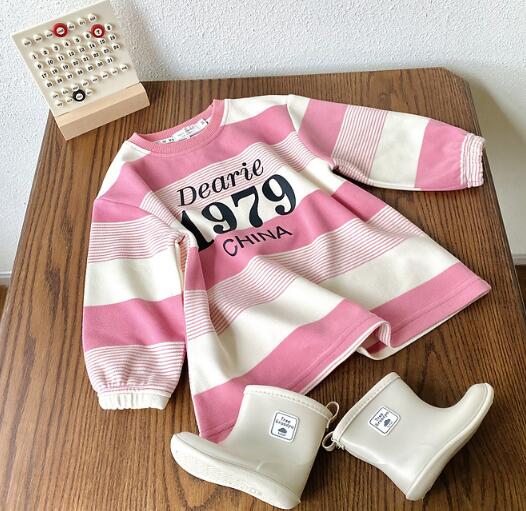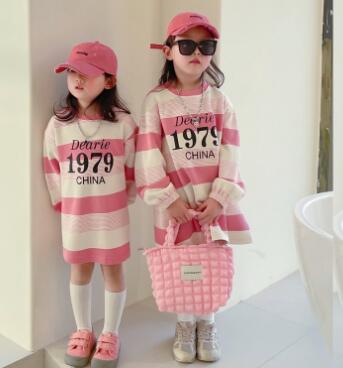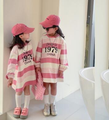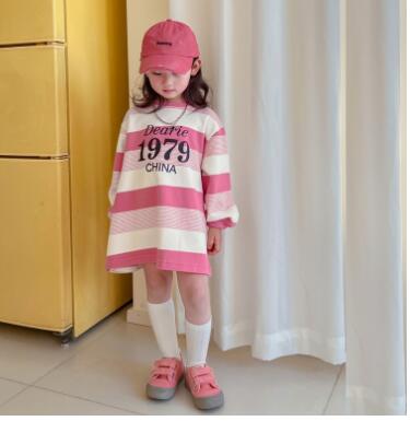 可愛いピンクボーダー柄のキッズ用ロングワンピースです。