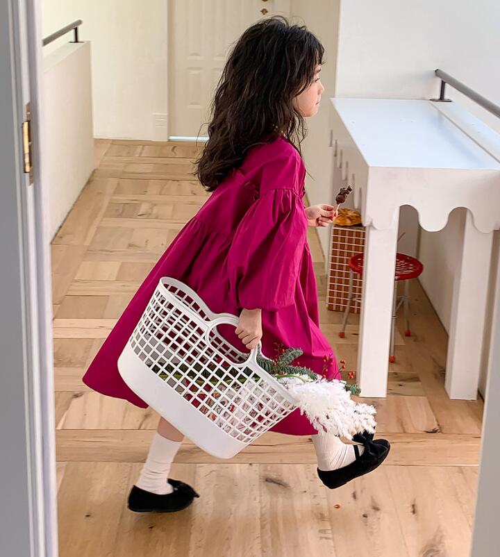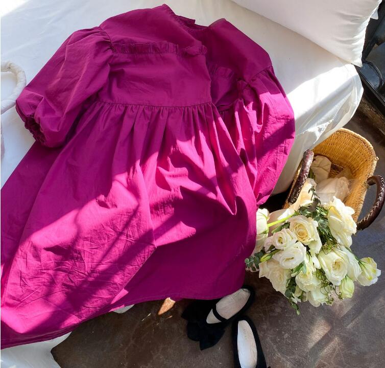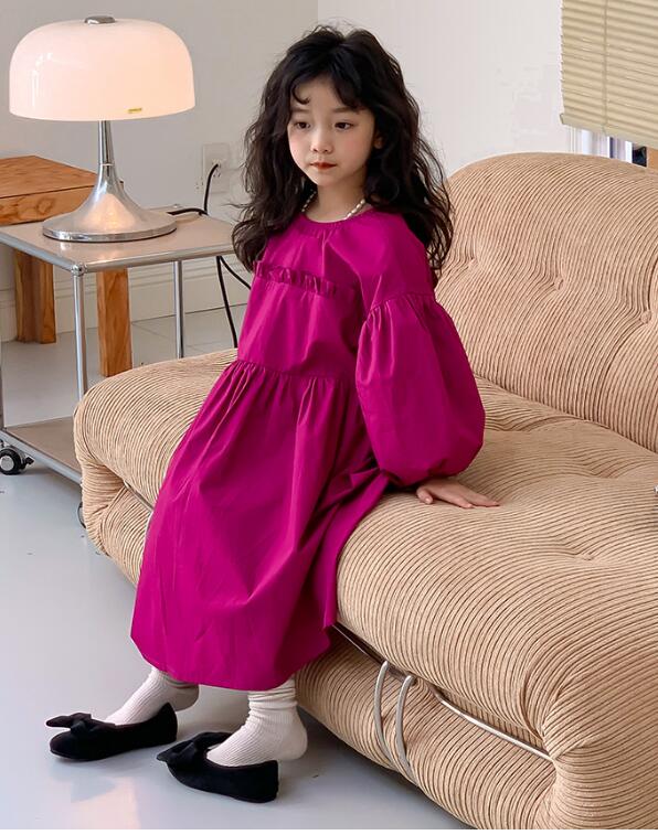 キッズ向けの可愛らしいロングワンピースです。 ふんわりとした袖とゆったりとしたシルエットが特徴的で、お出かけや普段使いにも最適です。 鮮やかな色合いが女の子らしさを演出し、動きやすいデザインで快適な着心地を実現しました。