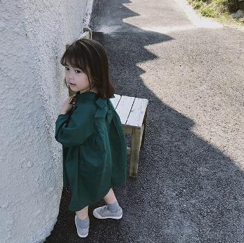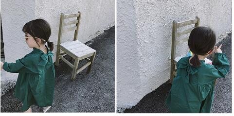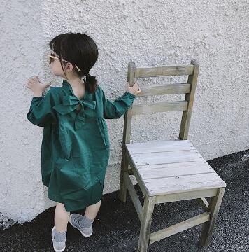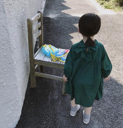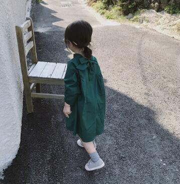 キッズ向けの可愛いロングワンピースです。 襟元のリボンがとても上品で、プリンセス気分を味わえる素敵なデザイン。 落ち着いた緑色で普段着からお出かけまで幅広く活躍します。 女の子らしいシルエットで着心地も抜群の一枚です。