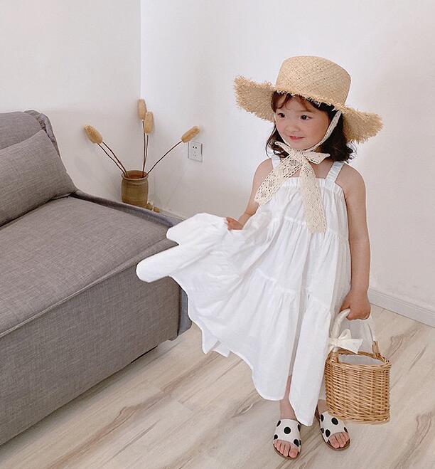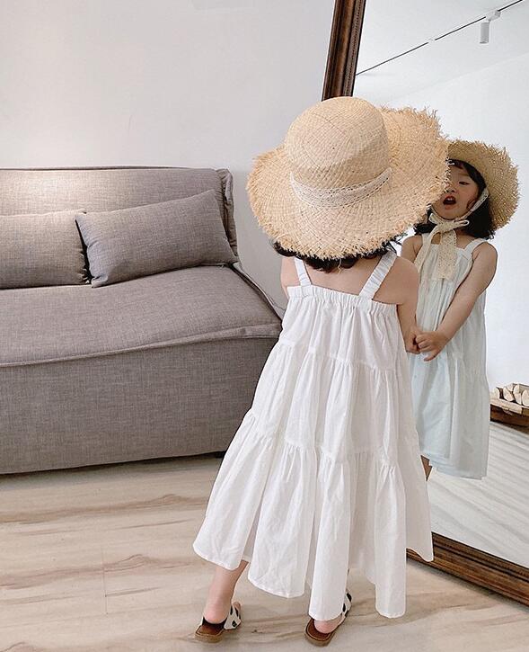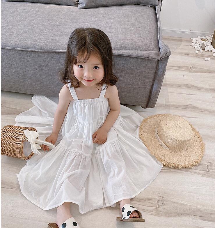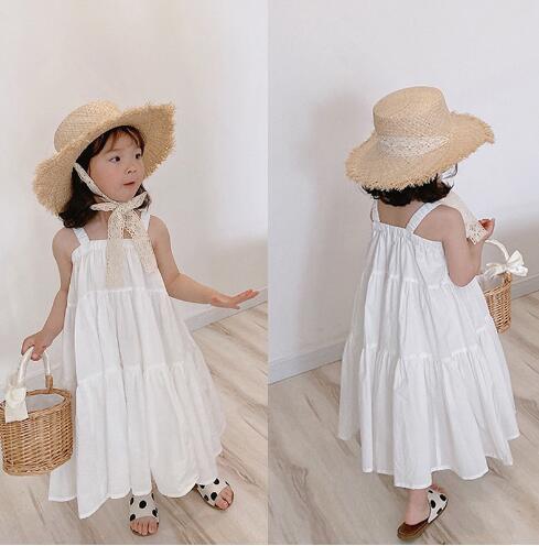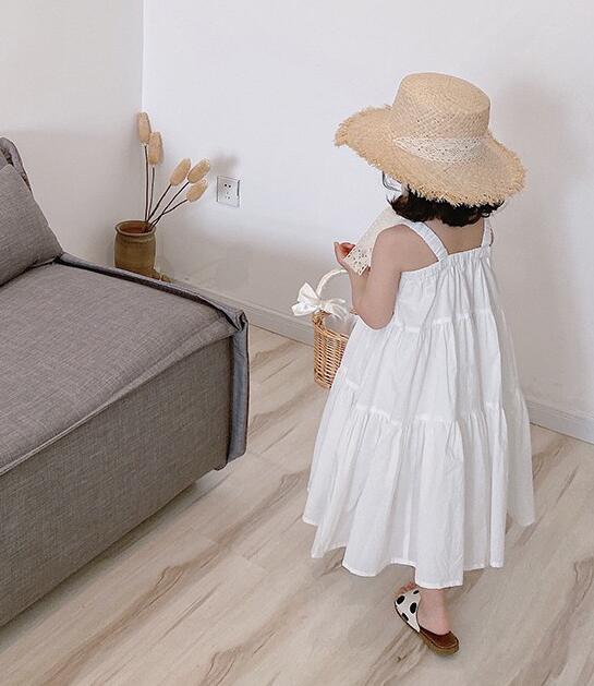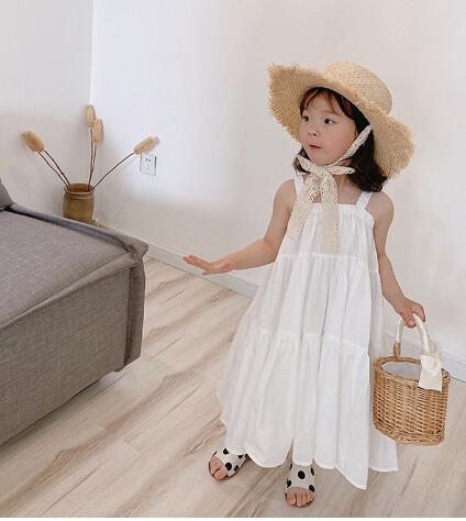 夏にぴったりの涼しげな白いキャミソールワンピースです。 キッズ向けのロングワンピースで、ティアードデザインが可愛らしい印象を演出します。 90センチから140センチまでサイズ展開豊富で、お出かけや普段着にも活躍する一枚です。