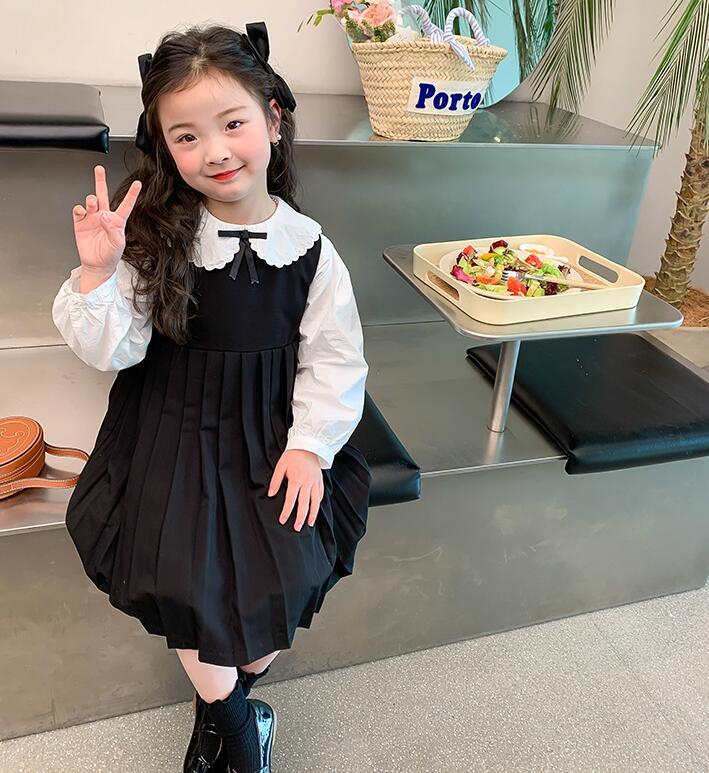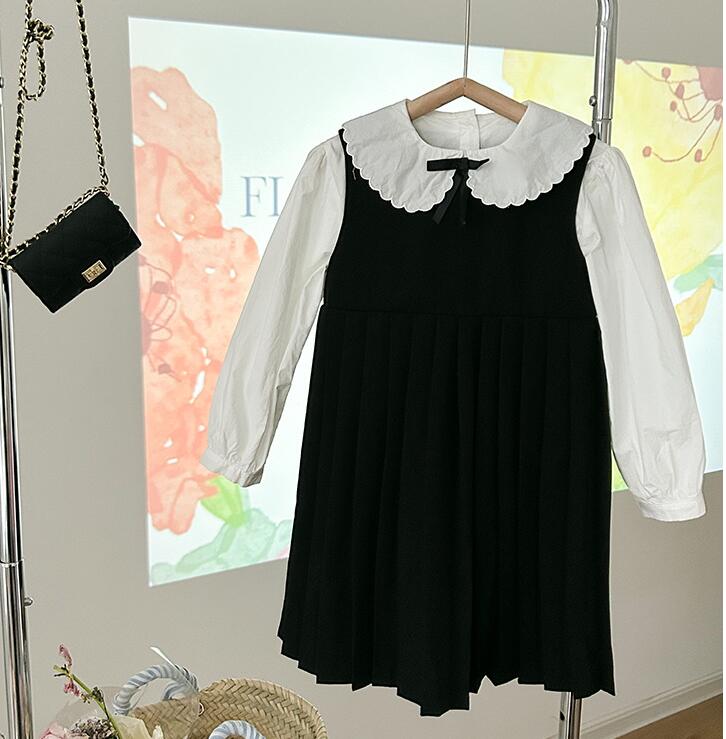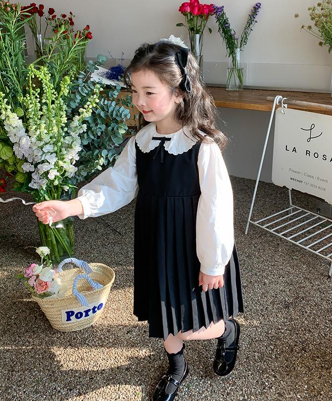 上品な学院風デザインのキッズ向けロングワンピースセットです。