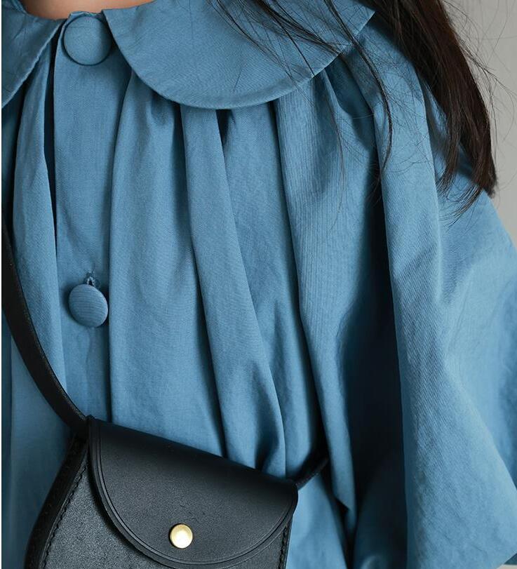 爽やかなブルーカラーと丸襟がとても上品で、お出かけにも普段使いにも最適。