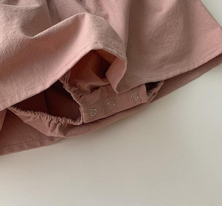 着脱しやすいロンパース仕様で動きやすく、お出かけから普段着まで幅広く活用できる一着です。