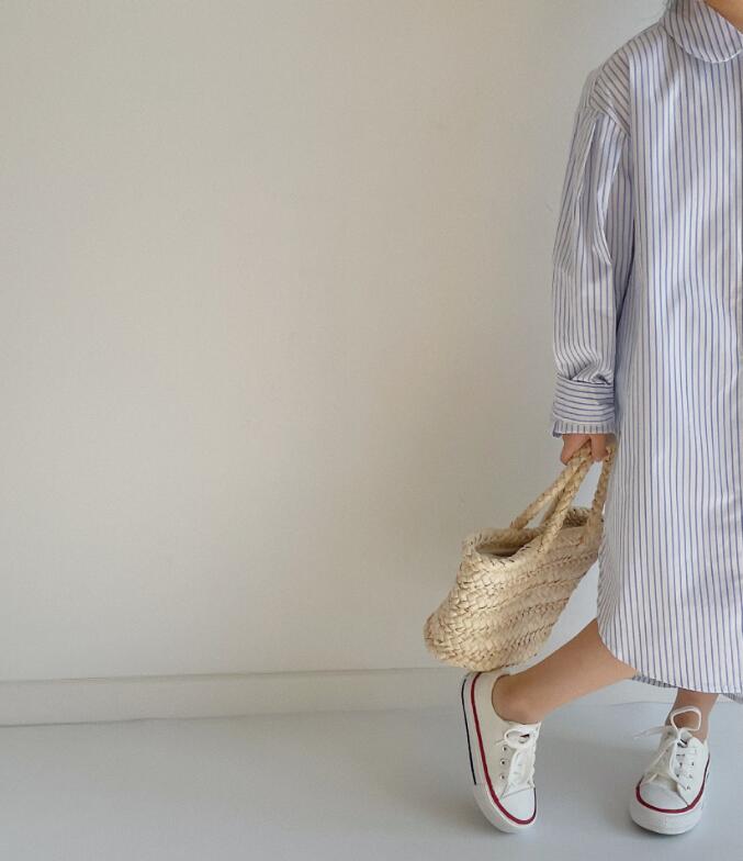 爽やかなストライプ柄のシャツ型デザインで、親子でお揃いコーディネートが楽しめます。