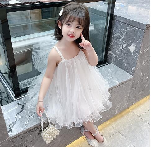 ふわふわのチュール素材で作られたキッズ女の子用の可愛らしいロングワンピースです。