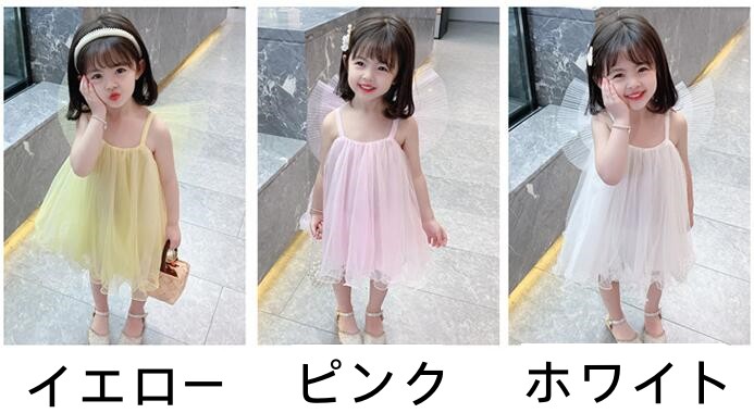 ピンク、白、黄色の三色からお選びいただけ、特別な日のお出かけにぴったりのキッズ向けドレスです。