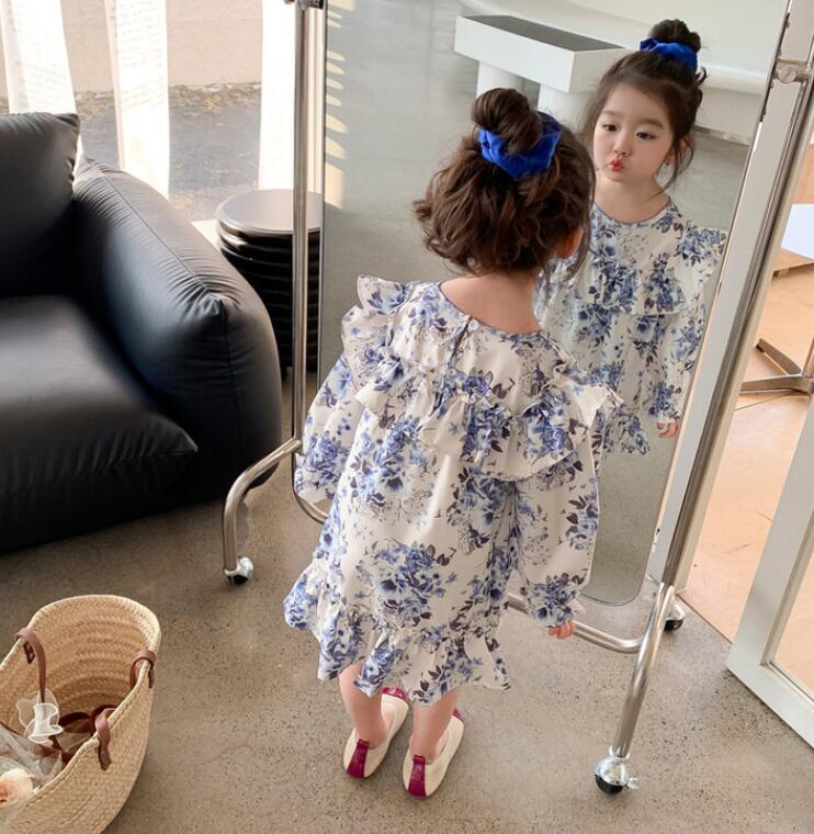 春夏にぴったりなキッズ向けの可愛い花柄ロングワンピースです。 丸首デザインにフリル袖が女の子らしさを演出します。 柔らかな素材で着心地抜群、普段着からお出かけまで幅広く活躍。 サイズは90cmから140cmまでご用意しております。