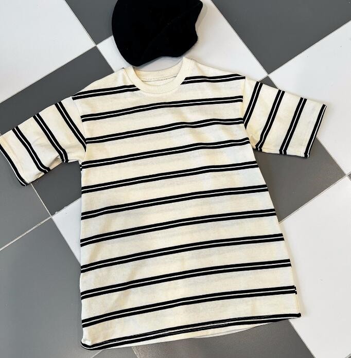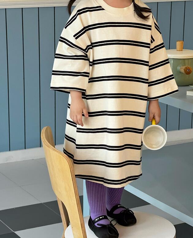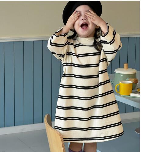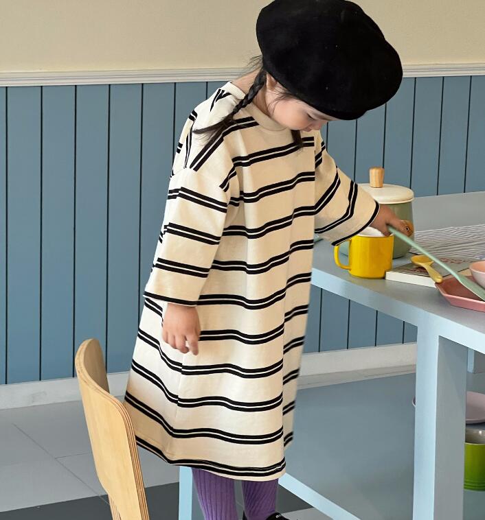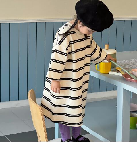 人気のボーダー柄がおしゃれなキッズ用長袖ワンピースです。